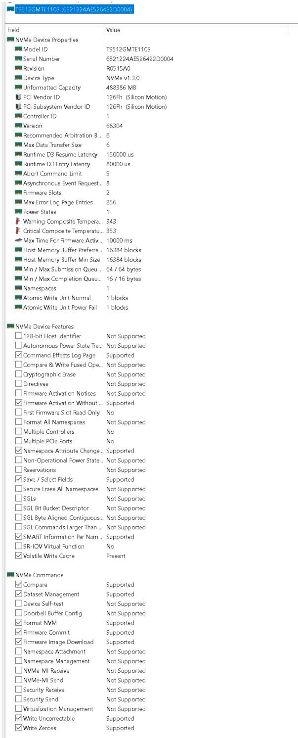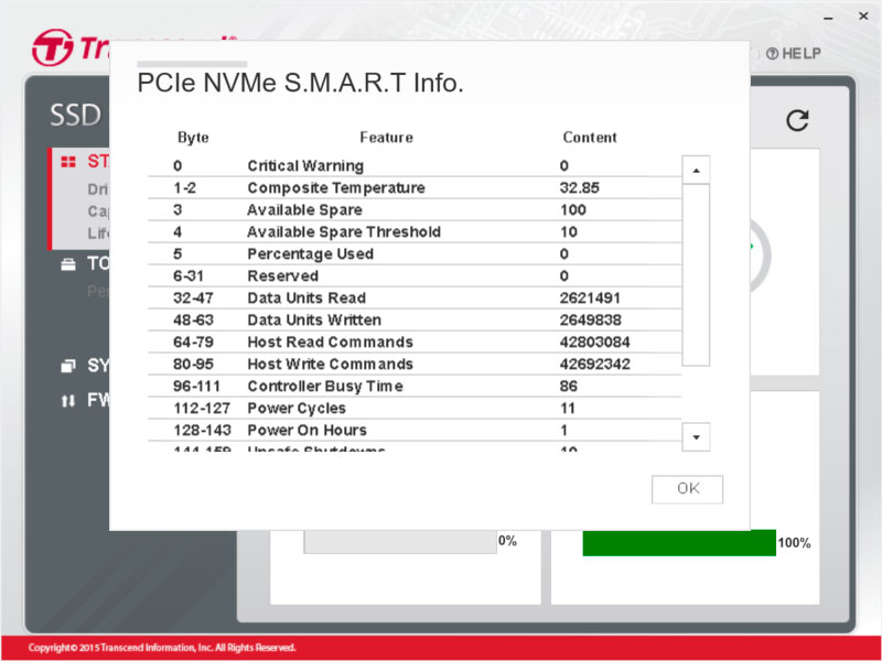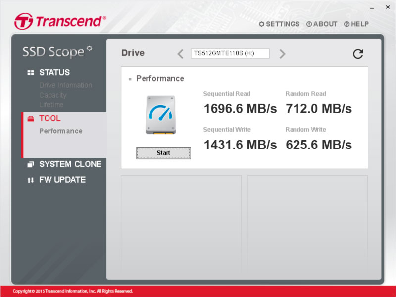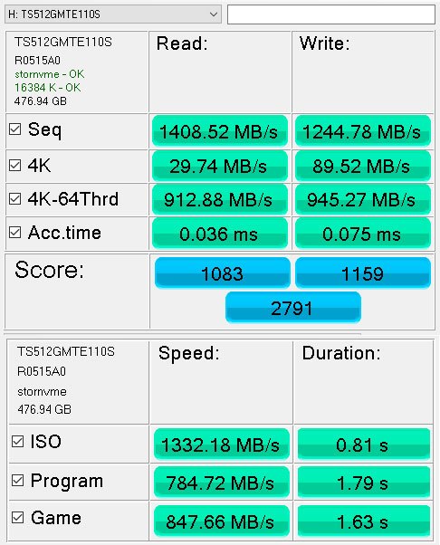 Transcend заявляет более низкие скорости чтения/записи, чем производитель контроллера – 1700 и 1500 Мбайт/сек соответственно. Возможно, это связано с используемой памятью и некоторыми модификациями прошивки относительно «стандартной».
