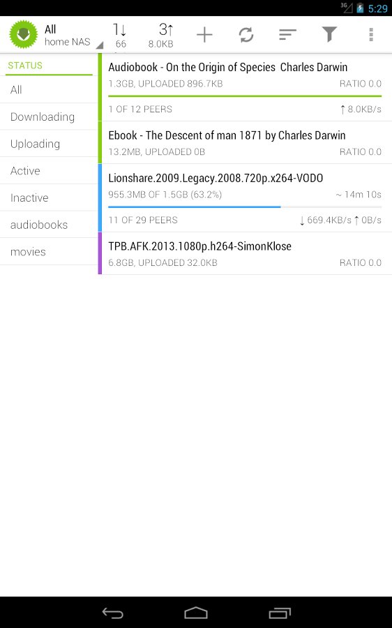 Transdrone – позволяет управлять торренты планируется установить на домашнем сервере или seedbox. Вы можете добавить torretns, запустить / остановить их, назначить ярлыки, просматривать трекеры и отдельные файлы, устанавливать приоритеты и многое другое!