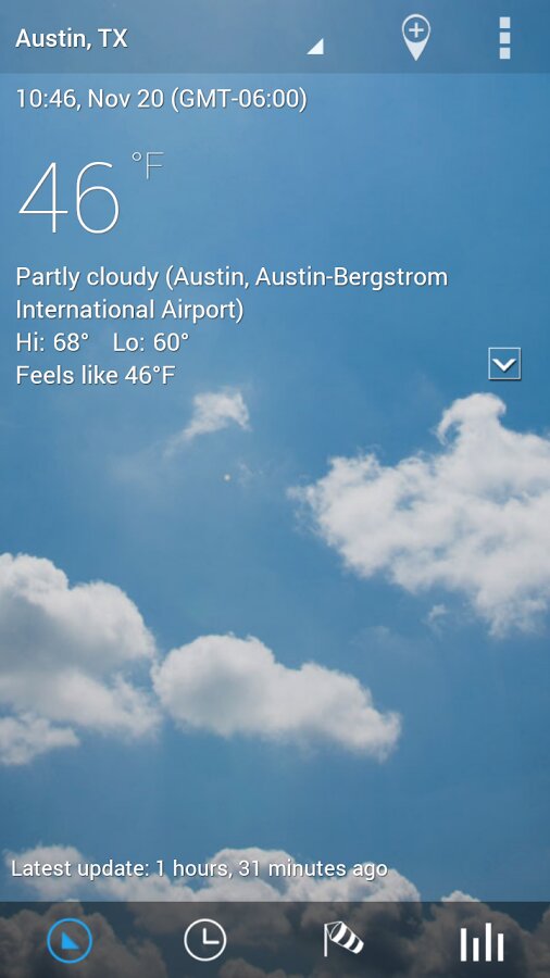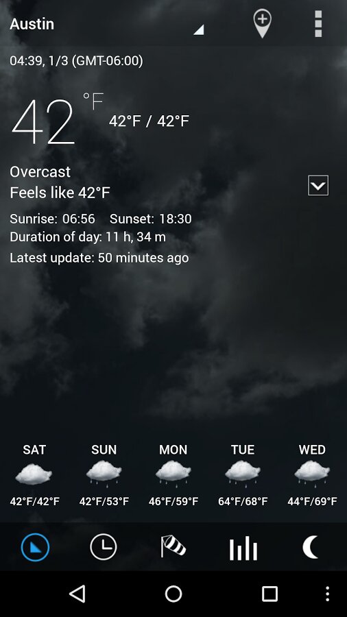 - Погодные условия для текущего местоположения (состояние и температура, минимальная и максимальная температуры и значок погоды).