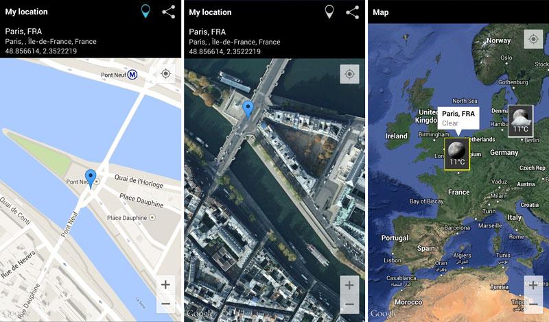 - Автоматическое определение местоположения (через мобильные сети/wi-fi или GPS) или ручное (указывается пользователем).