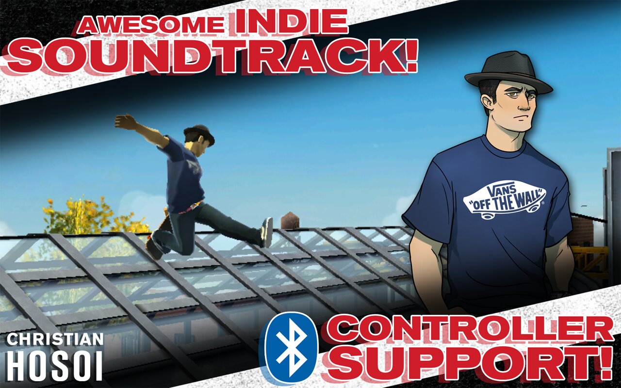 Больше трюков, больше комбо, больше веселья, чем в любой скейтборд-игре в мире. Вперед за огромными эйрами, длинными грайндами и большими флипами! Но смотри в оба… можно потерять много из того, что собрал! Классно стилизованная графика не даст тебе оторваться от игры, пока ты будешь кружить по школьным коридорам или прыгать через огромные промежутки между крышами! Ищи скрытые бонусы и трофеи на уровнях чтобы улучшить свой результат!