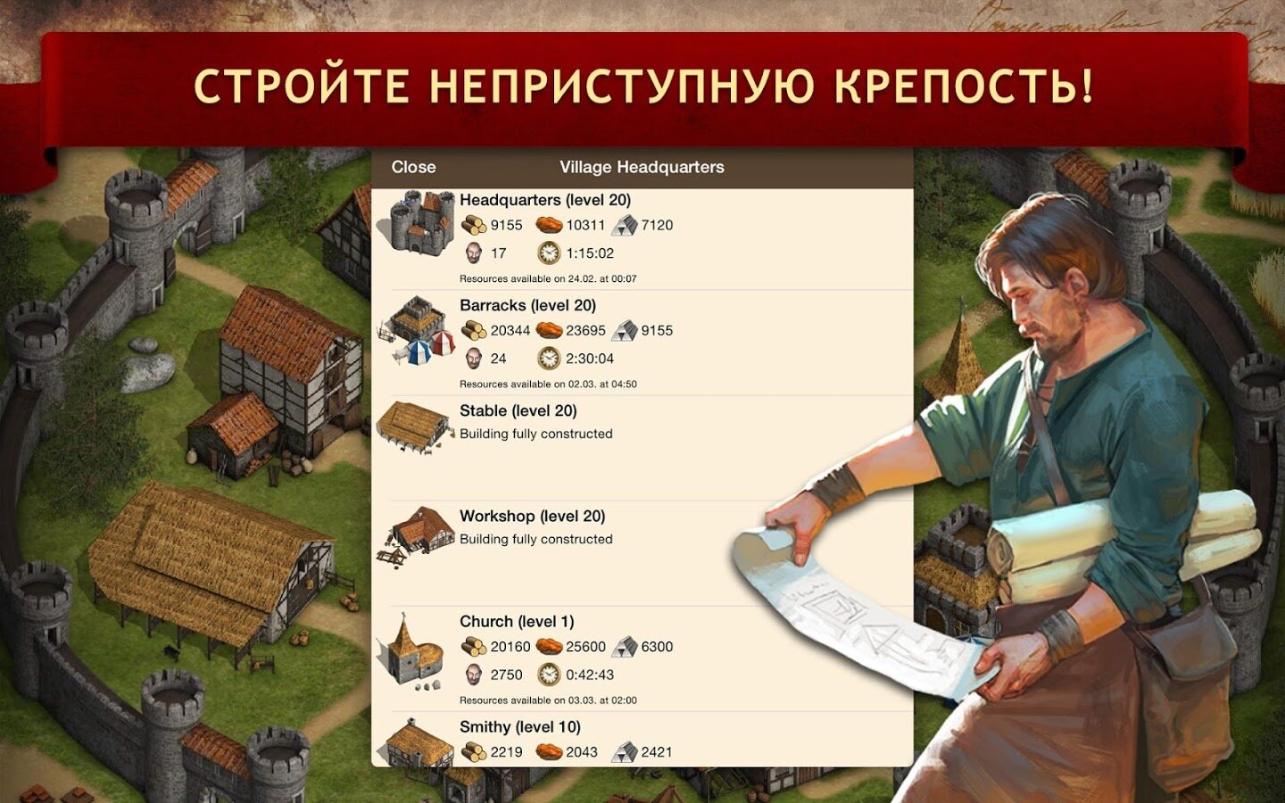 - Объединяйтесь с другими игроками в племена и объявляйте войну своим врагам.