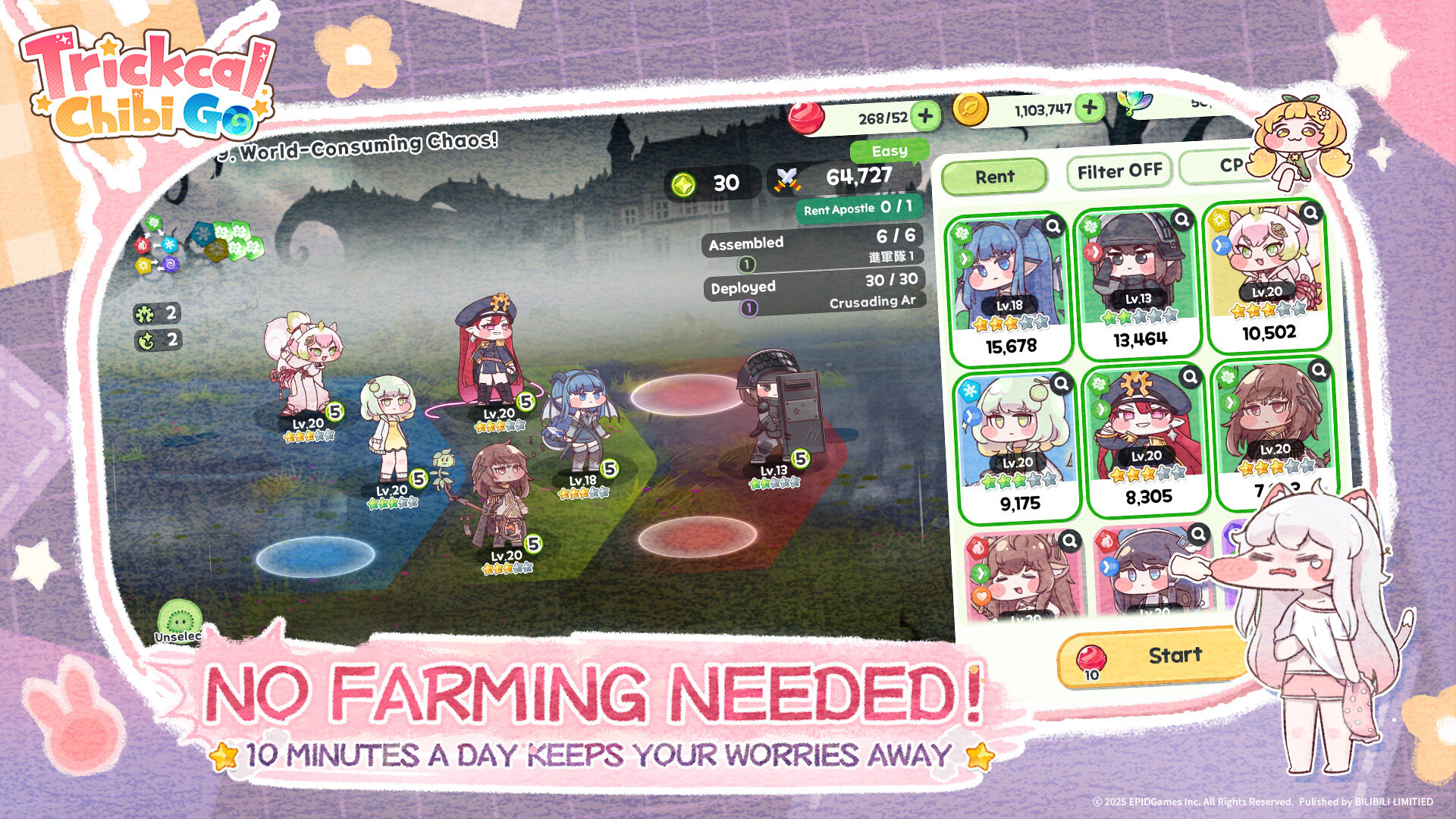Trickcal:Chibi Go — это очаровательная RPG-игра, действие которой происходит в причудливом фэнтезийном мире.
