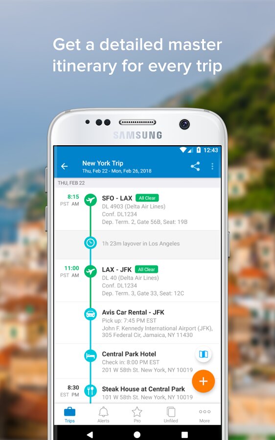 TripIt — это приложение для организации путешествий для Android, которое упорядочивает ваши планы поездок в один легко читаемый маршрут. С TripIt вы можете легко отслеживать свои рейсы, отели, аренду автомобилей и другие бронирования в одном месте.