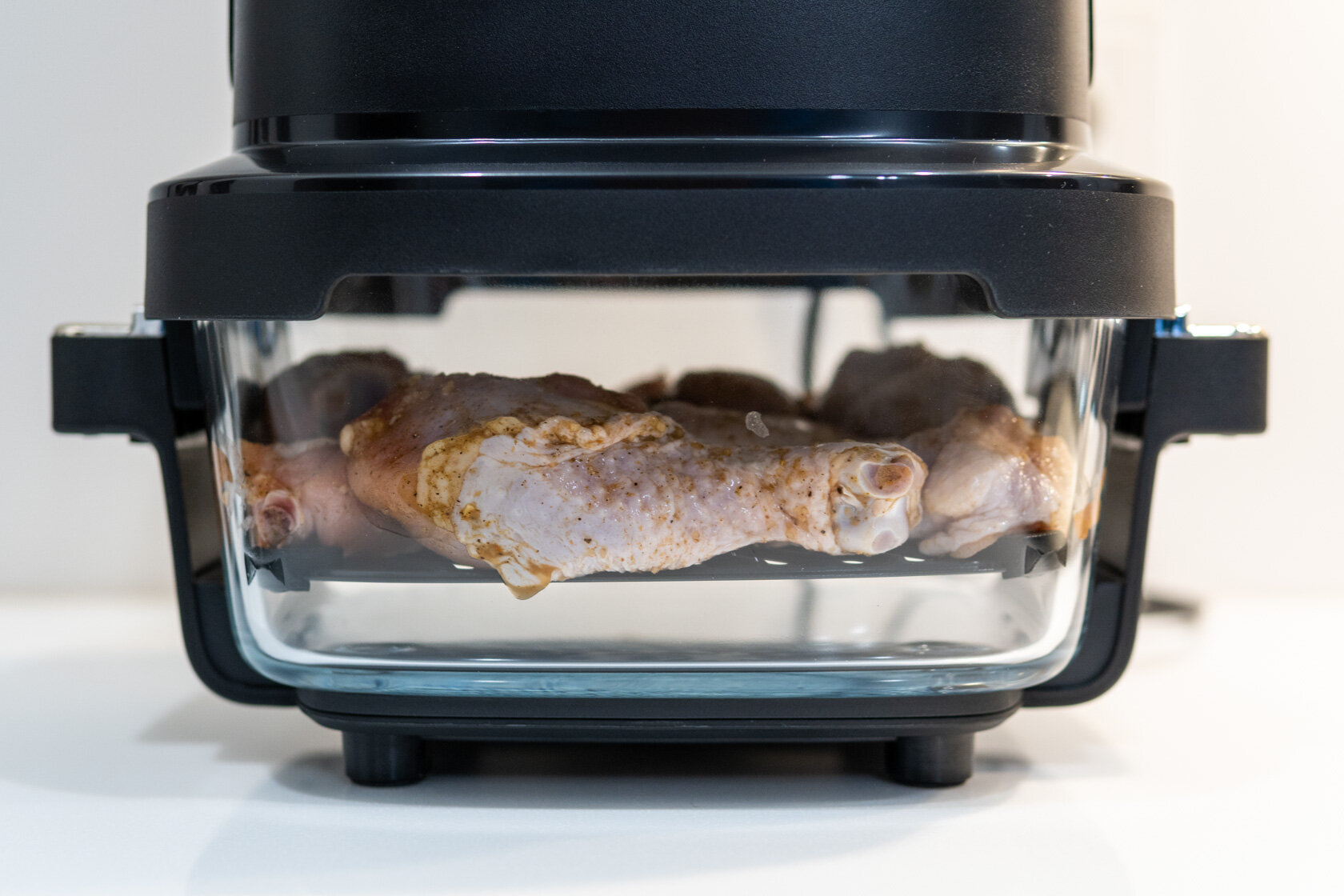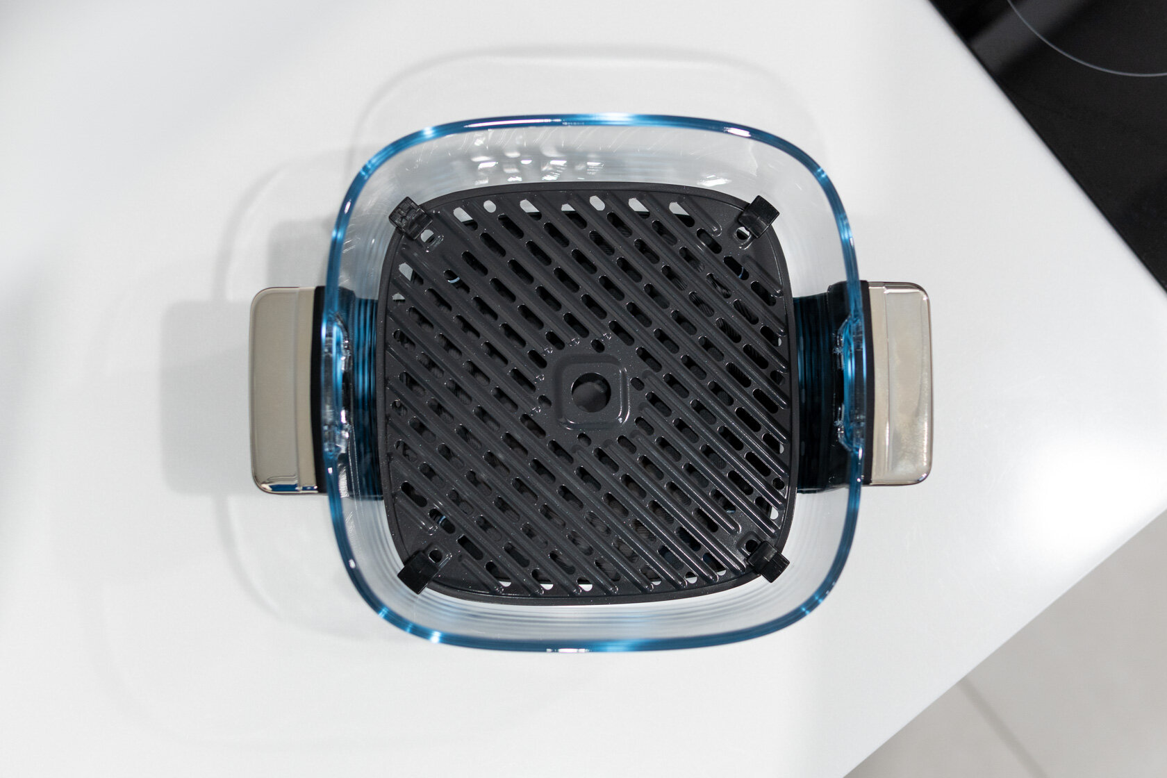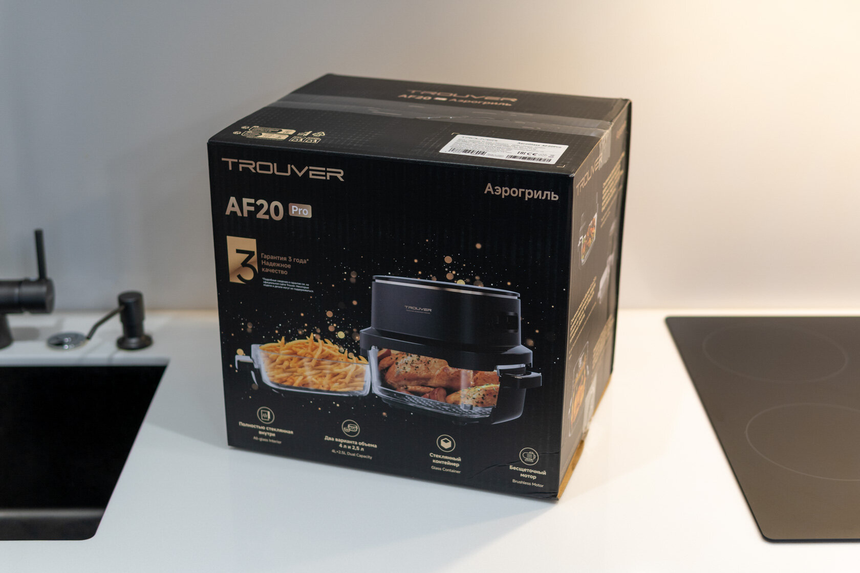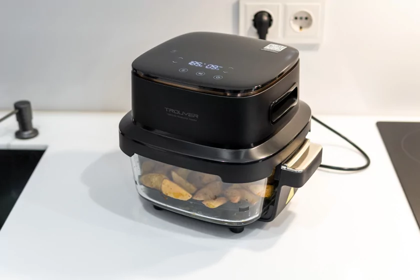Стекло вместо металла: обзор компактного аэрогриля Trouver AF20 Pro, в котором видна еда