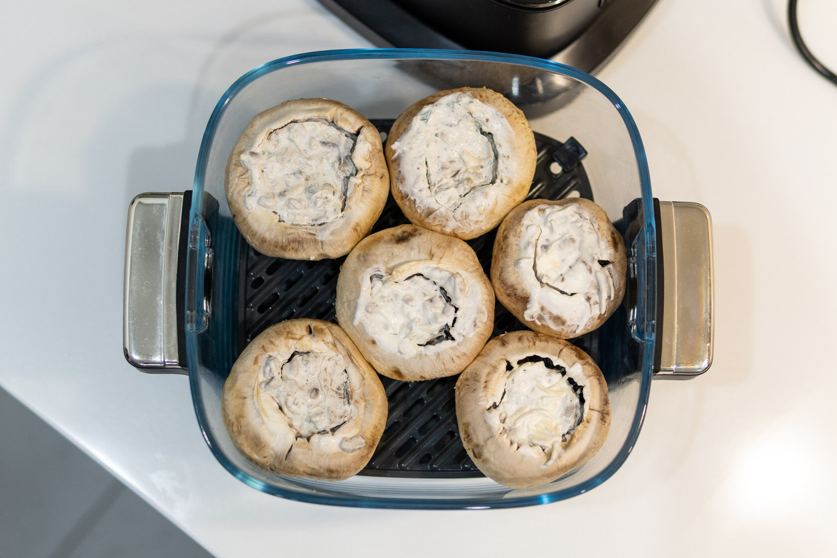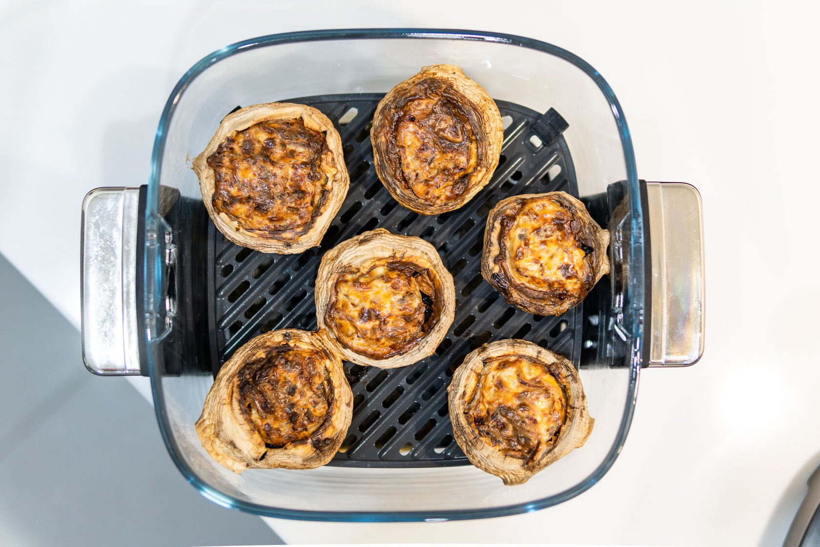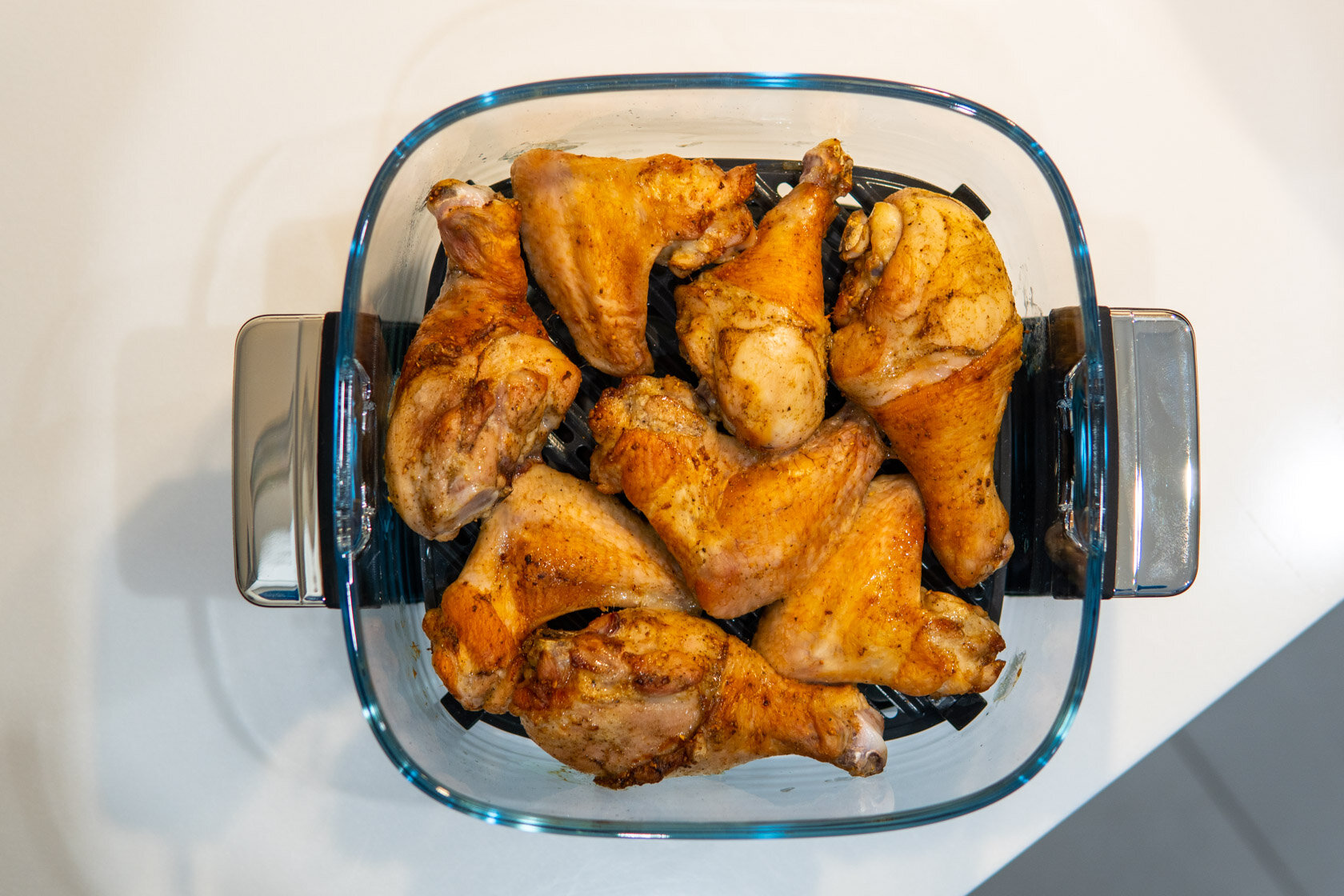 Стекло вместо металла: обзор компактного аэрогриля Trouver AF20 Pro, в котором видна еда