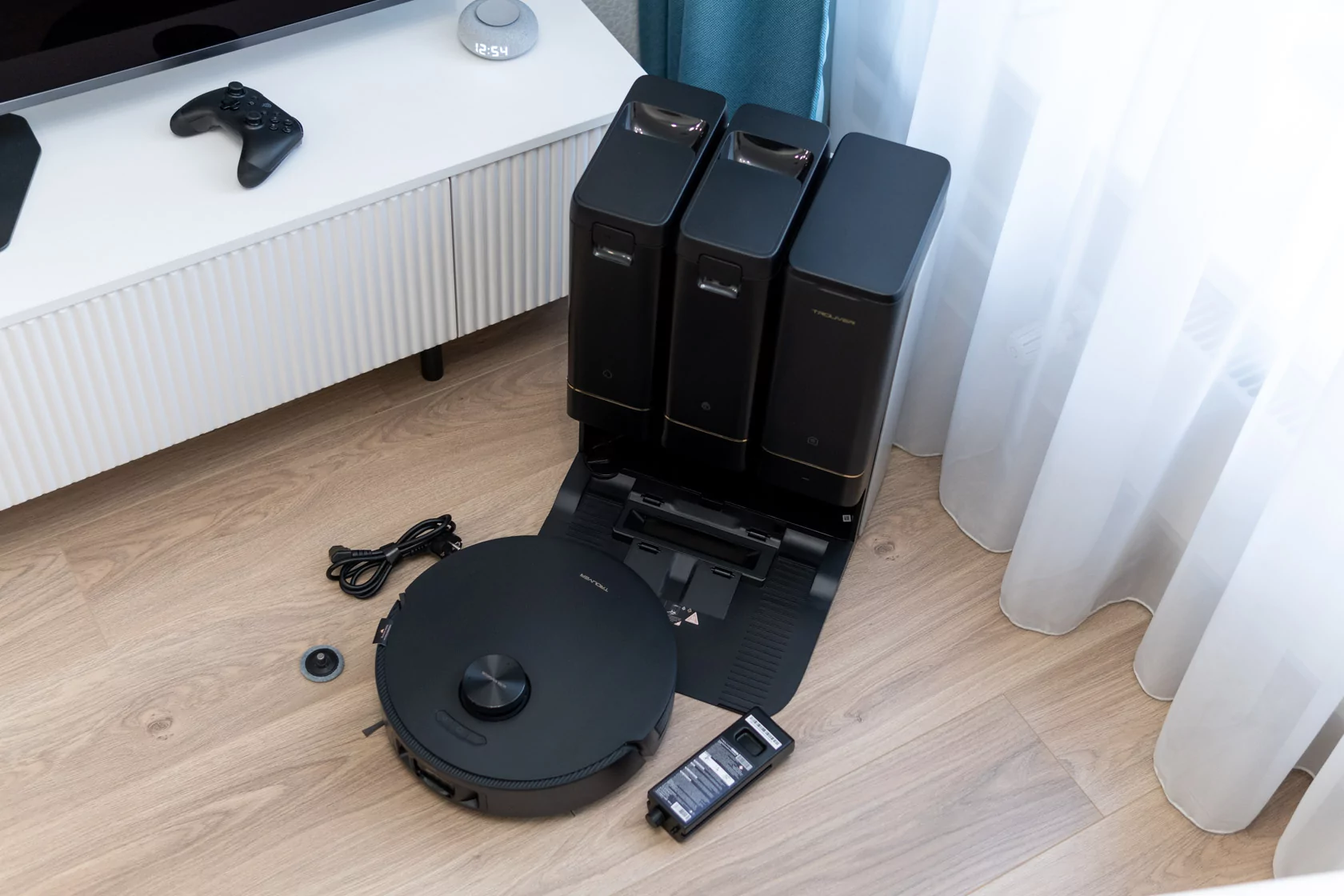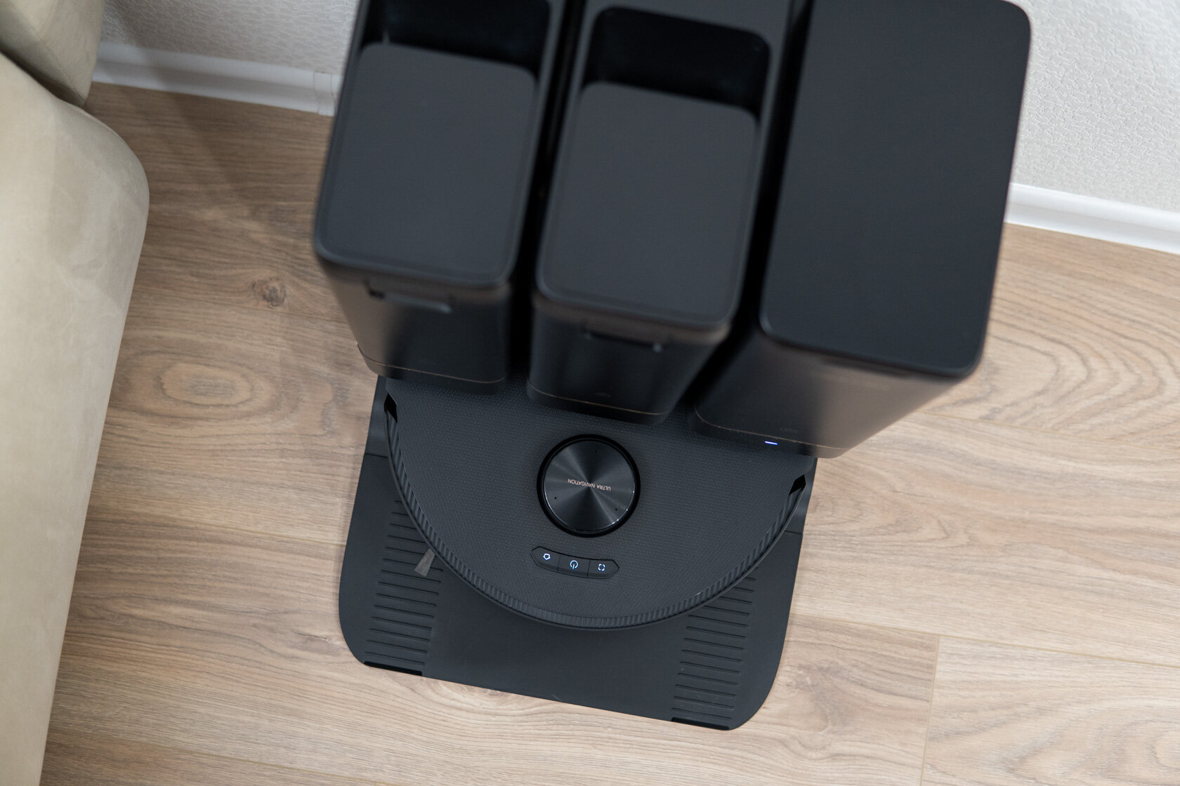 И, конечно, нельзя пройти мимо базовой станции, которая выполняет львиную долю задач по обслуживанию устройства вместо человека. Это действительно важное преимущество — после такой модели «обычные» роботы-пылесосы уже не выглядят такими уж практичными в повседневной жизни.