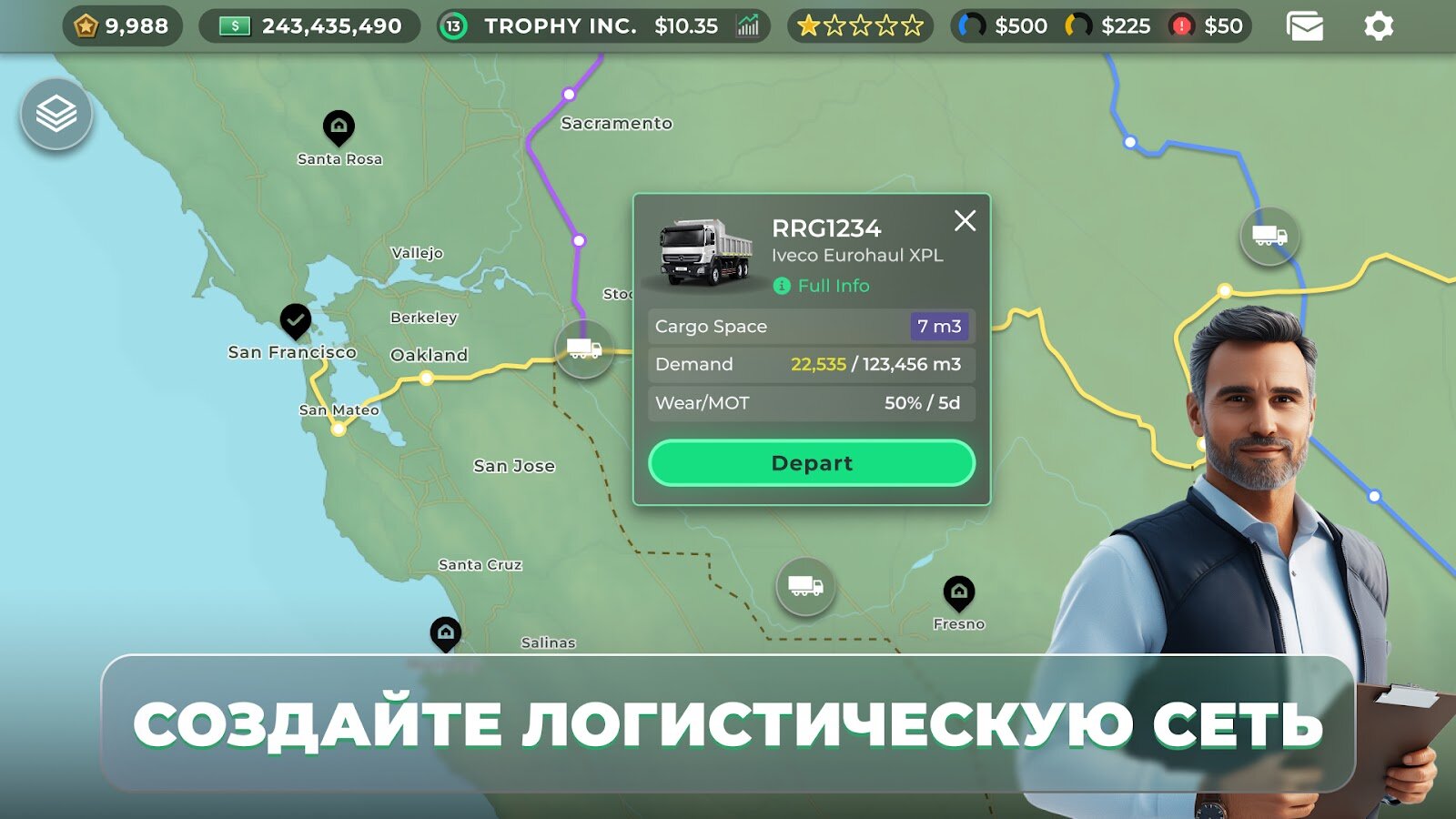 В Truck Manager — 2025 представлены разнообразные грузовики, похожие на реальные бренды, и продуманная экономика с колебаниями рынка. Вы управляете не только транспортом, но и персоналом, следите за техническим состоянием машин, улучшаете их и расширяете сеть доставки в крупные города планеты. Реалистичная графика и удобный интерфейс помогают погрузиться в мир грузоперевозок с головой.