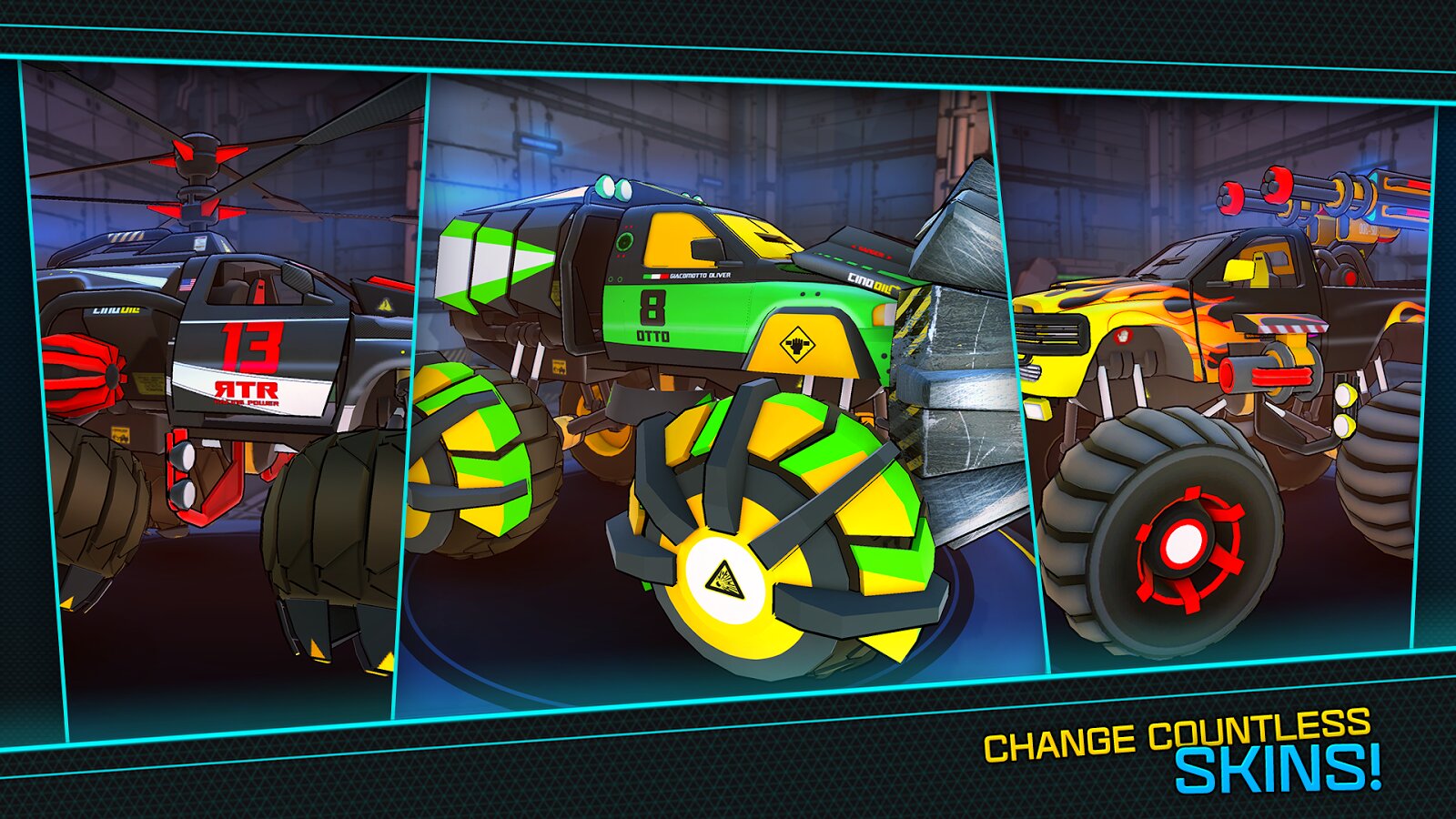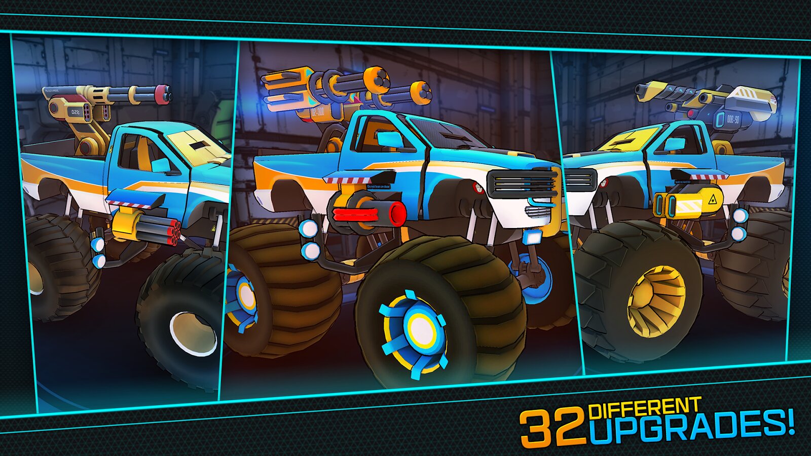В своем путешествии ты посетишь несколько континентов: от пустынных дюн до вулканических гор и холмов в пышной зелени — все это есть на более чем 60 уровнях, наполненных экшеном. Твой крутой грузовик трансформируется в различные специализированные машины: внедорожный грузовик, боевой грузовик, грузовик-бур и вертолет.