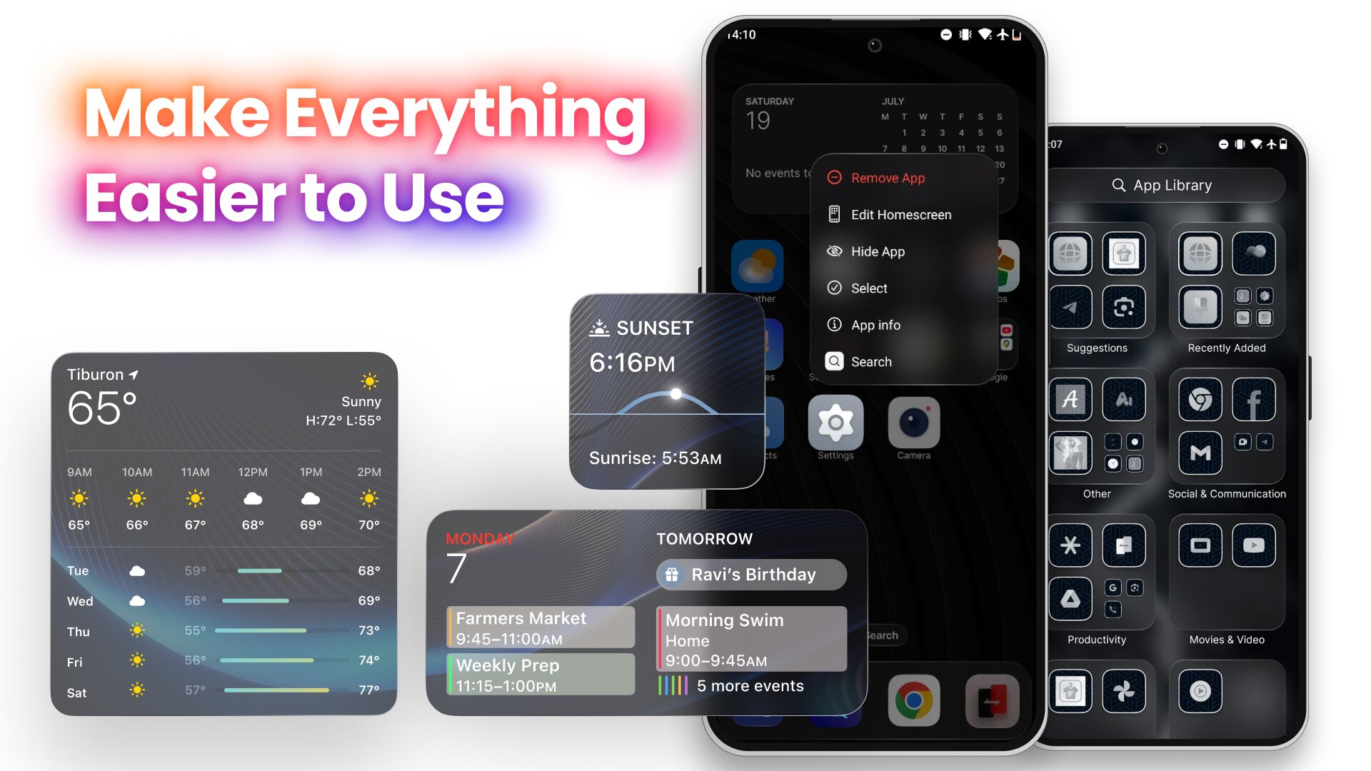 True Launcher переосмысливает домашний экран вашего Android-устройства, предлагая идеальный баланс элегантного дизайна и интеллектуальных функций.