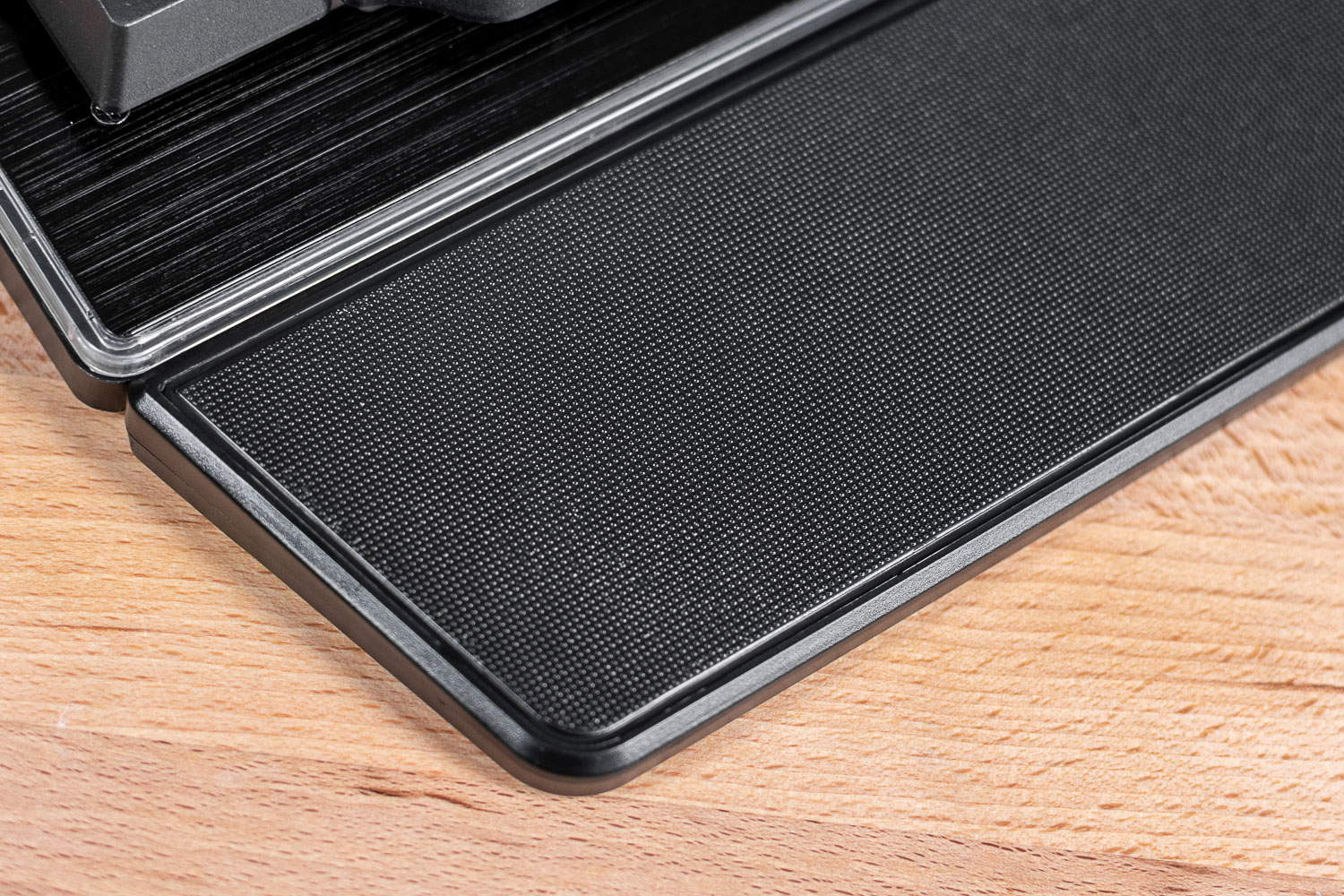 Дополнительный упор для ладоней из обычного жёсткого пластика серьезно улучшает эргономику. Площадка надёжно крепится с помощью двух защёлок встык. На поверхность нанесена приятная мелкоячеистая текстура.