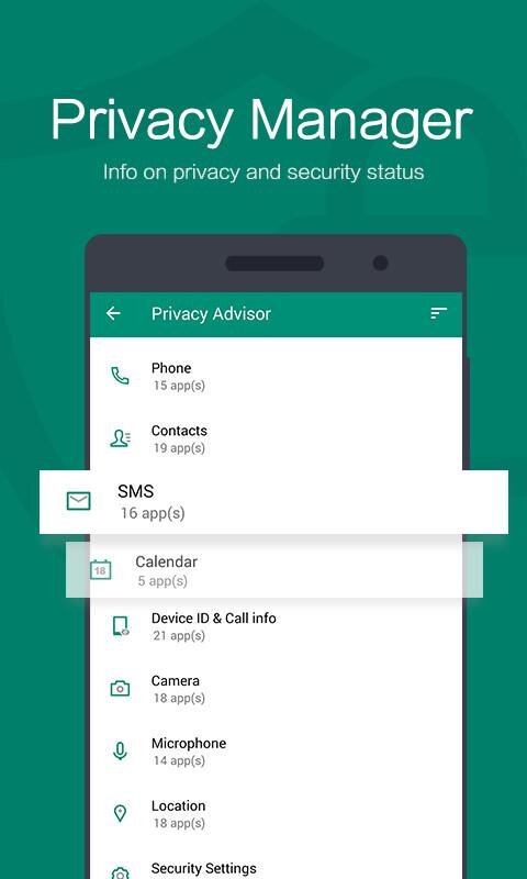 - защита приватных данных. Защищает личные данные при помощи мониторинга и выявления приложений, которые имеют разрешение на доступ к Вашей личной информации.