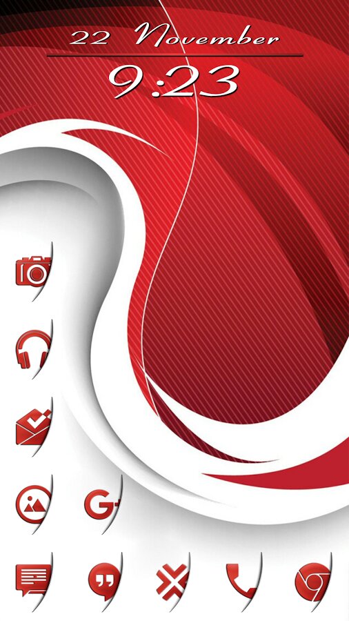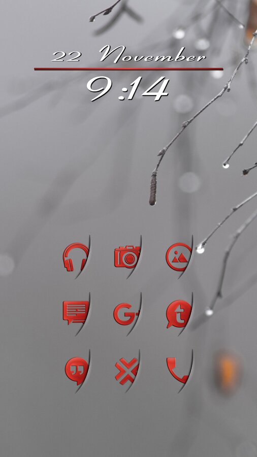 Интересный сборник красных иконок, которые как будто выглядывают из-за невидимой стены. Поддерживается большинством лаунчеров.
