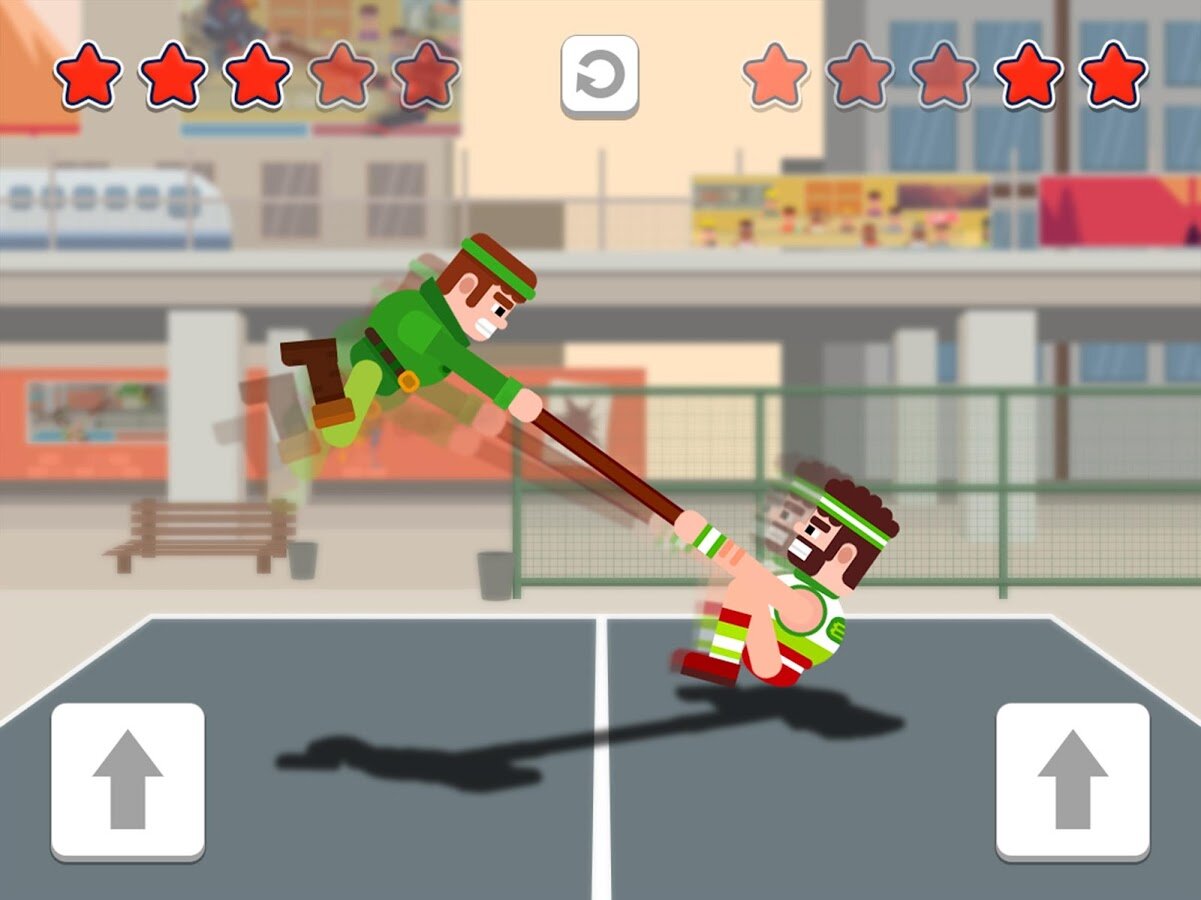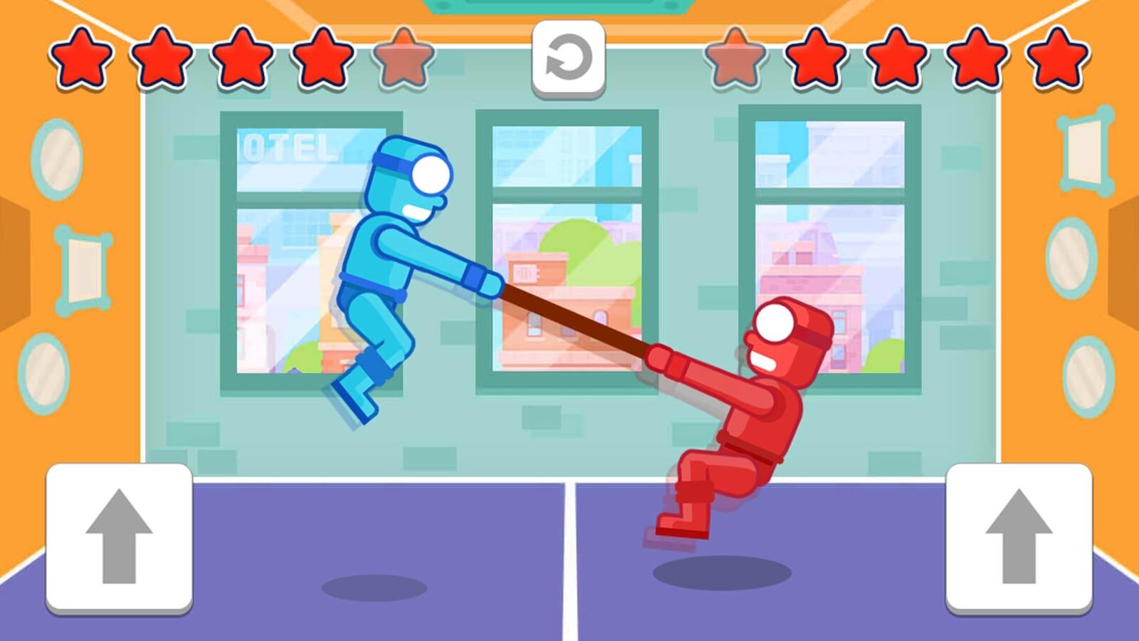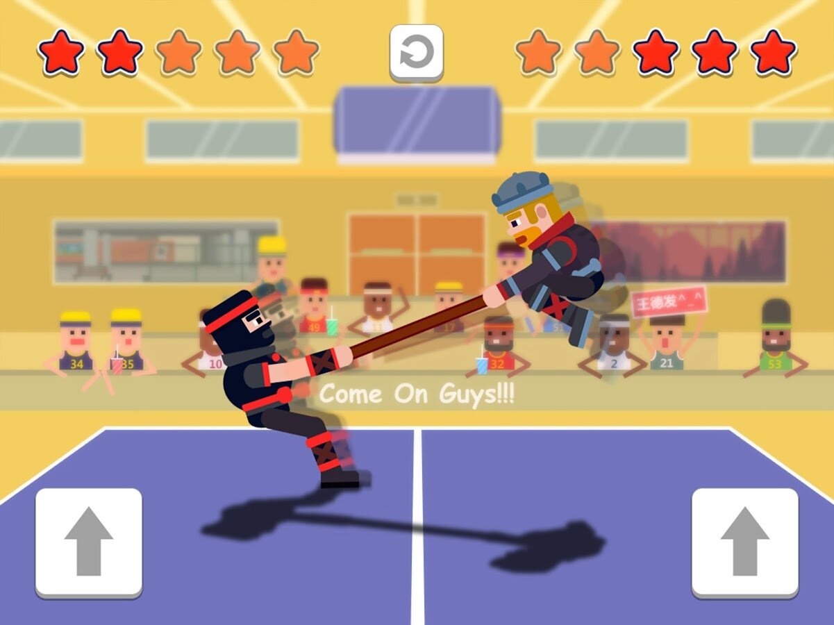 Не можете решить, кто пойдет выносить мусор? Попробуйте договориться мирно, но если не выйдет, добро пожаловать в Tug Table! Микс из классической игры в перетягивание канатов и новомодного апгрейда в виде сумасшедших прыжков. Все, что вам нужно – это прыгать и тянуть на себя своего соперника, кто первый окажется за пределами белой линии – тот проиграл.