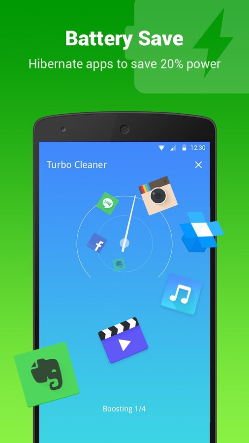 - Оптимизация фоновых приложений. Турбо Клинер освобождает оперативную память, тем самым улучшает производительность устройства. Фоновые приложения будут остановлены и выгружены из памяти, чтобы ускорить работу смартфона и уменьшить потребление заряда аккумулятора.