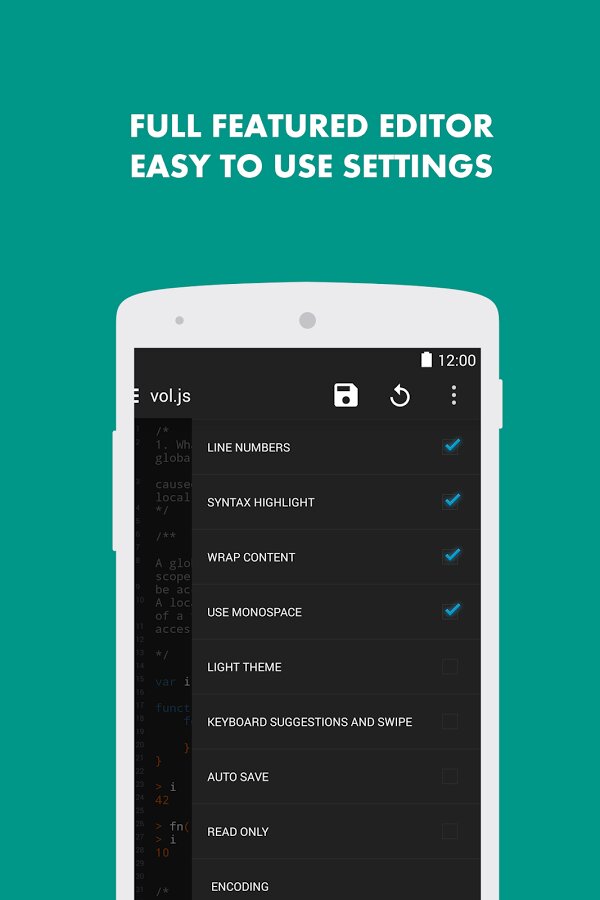 Простой и мощный текстовый редактор с открытым исходным кодом для Android. Разработано с соблюдением последних требований для Android, чтобы обеспечить простоту использования как в магазине, так и на мобильном устройстве!