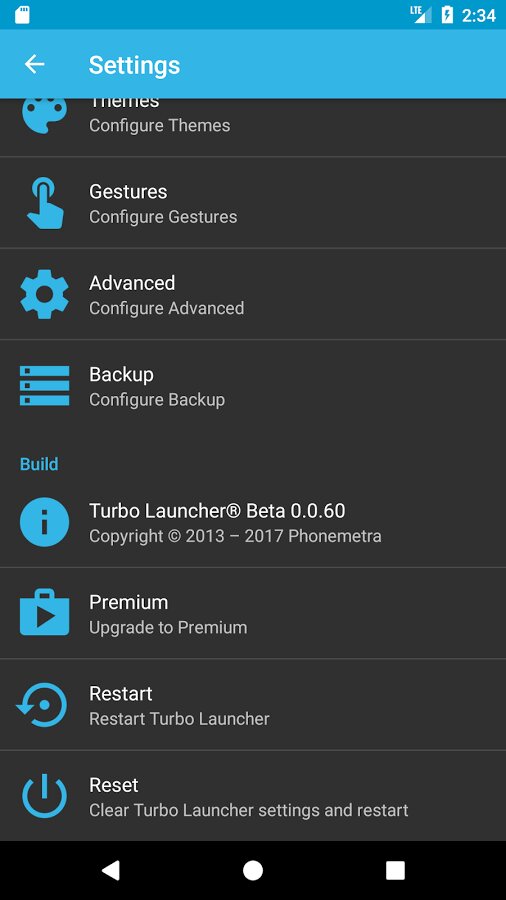 Turbo Launcher – еще один интересный лаунчер для андроид. Как и все остальные лаунчеры, данный так же претендует на скорость действия, гибкость и простоту, но, помимо всего этого, вам предоставляется возможность установки к нему тем, паков иконок и обоев и многое другое.