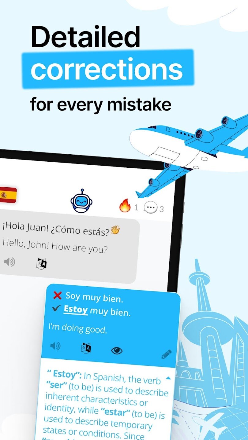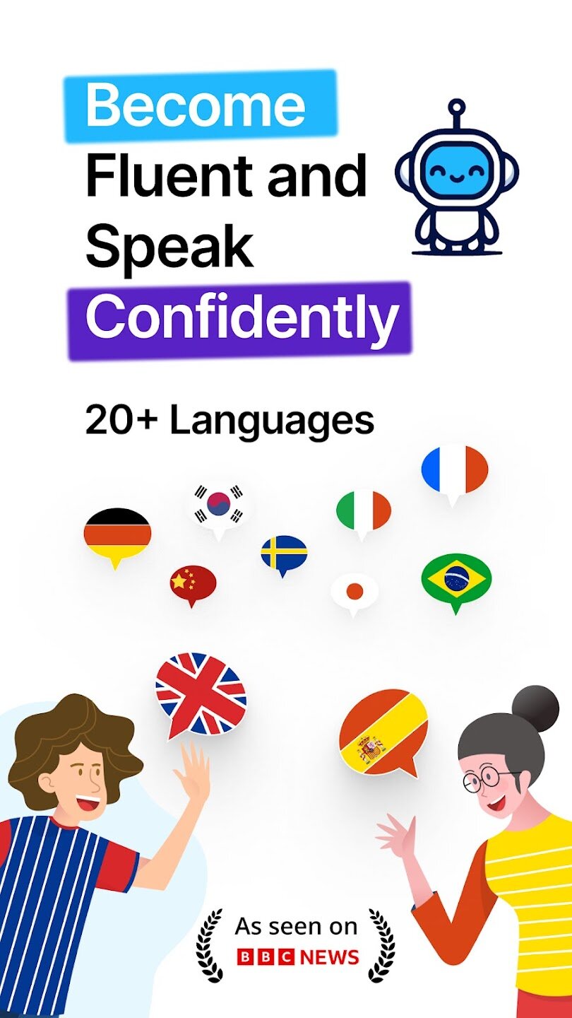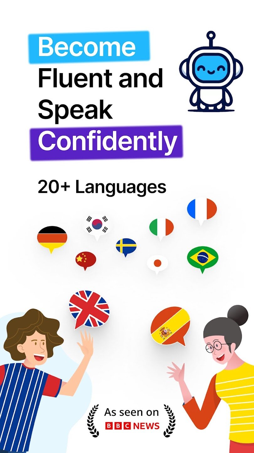 Приложение поддерживает ролевые игры с известными персонажами и историческими личностями. Вы можете практиковаться в ситуациях реального общения: заказ в кафе, деловые переговоры или светская беседа. Инструмент перевода помогает преодолевать сложные моменты, а умные подсказки не дадут потерять нить разговора. Доступно 18 языков с постоянным добавлением новых.