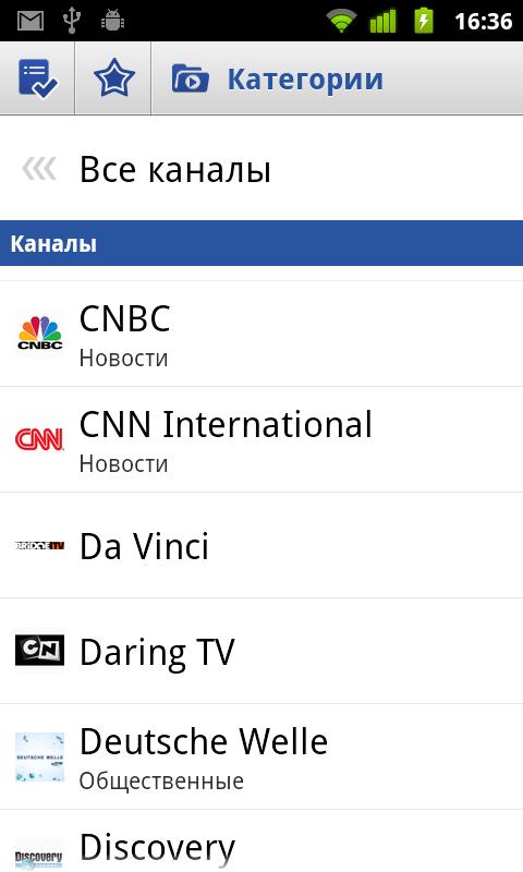 TV Box — приложение для просмотра программы передач цифрового ТВ для OC Android версий 2.1, 2.2, 2.3. Реализована поддержка большого числа российских каналов (около 120 каналов).