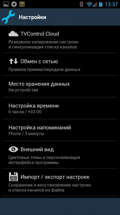TV Control — это приложение, показывающее программу телепередач в вашем мобильном устройстве. Программа телепередач. Доступно 360 телеканалов.