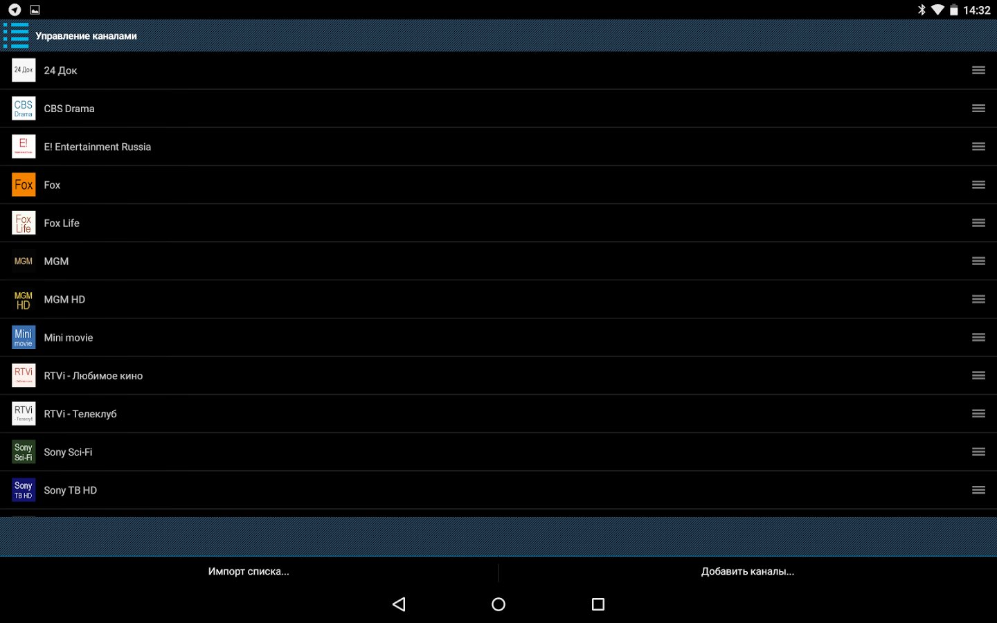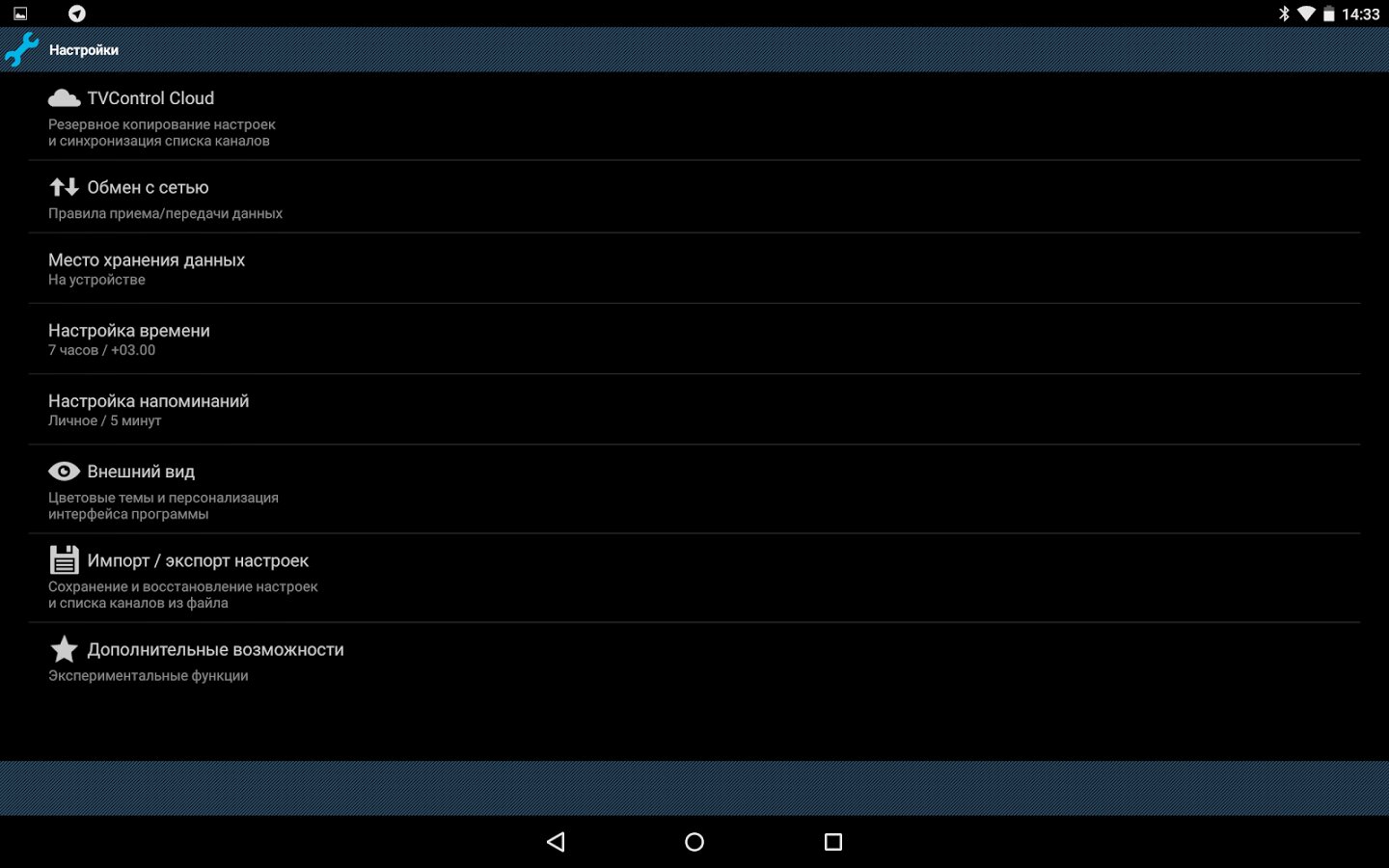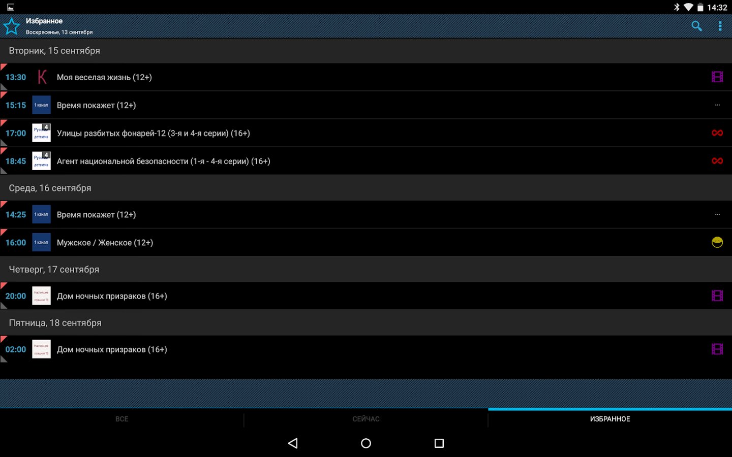 ТВ программу можно обновить в конце недели и Вы получите программу передач на сегодня и на неделю на все каналы. При закачке телепрограммы на неделю на один канал израсходуется трафик 0,5 — 5,0 кБайт (если без анонсов). Приложение распространяется совершенно бесплатно.