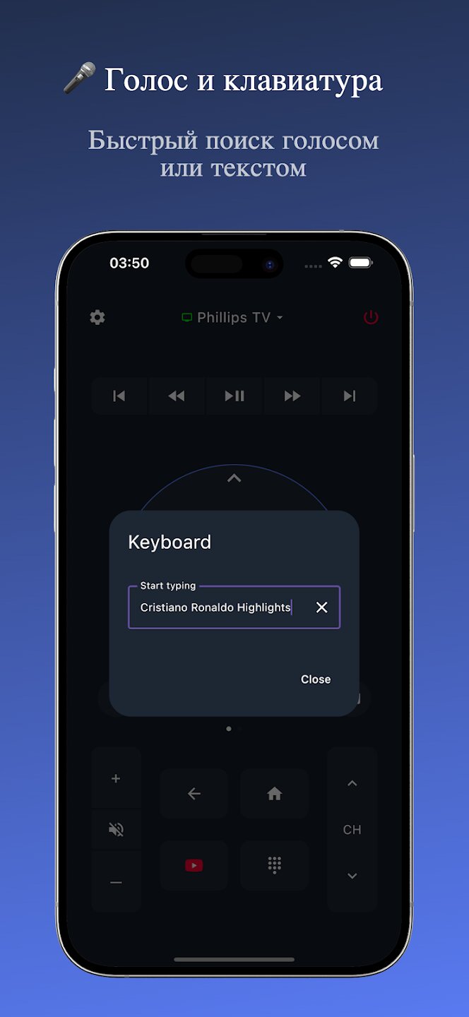 TVee избавляет от необходимости использовать физический пульт, мгновенно подключаясь через домашнюю сеть Wi-Fi. Оно автоматически обнаруживает все совместимые Smart TV таких брендов, как Philips, Sony, TCL, Hisense, Xiaomi, Panasonic, Sharp, Toshiba, Roku TV и Fire TV. После подключения вы получаете полный контроль над телевизором: регулируйте громкость, переключайте каналы, перемещайтесь по меню с помощью отзывчивого экранного джойстика и даже запускайте приложения, такие как YouTube или Netflix, с помощью специальных горячих клавиш. Приложение не требует ИК-бластера или дополнительного оборудования, что делает его простой и мощной заменой утерянным или сломанным пультам.