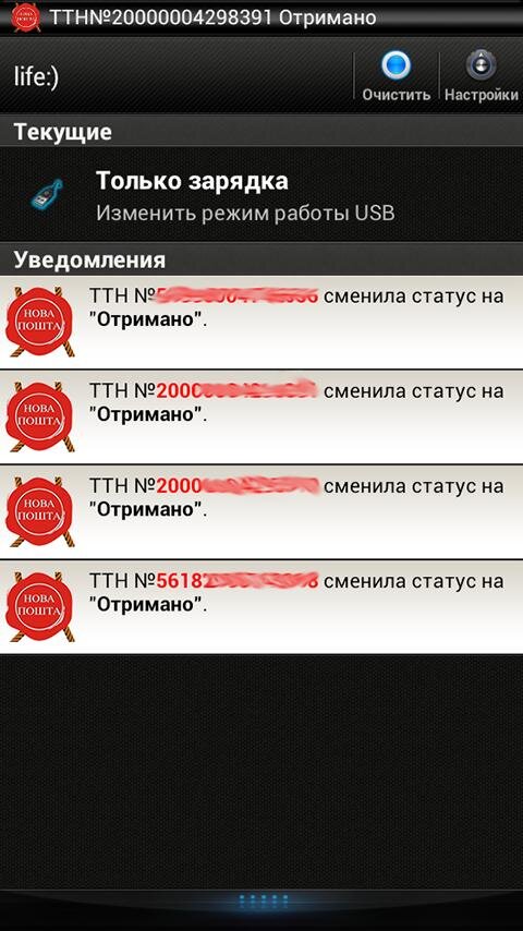 — Уведомления в статус-бар о изменившихся статусах ТТН;