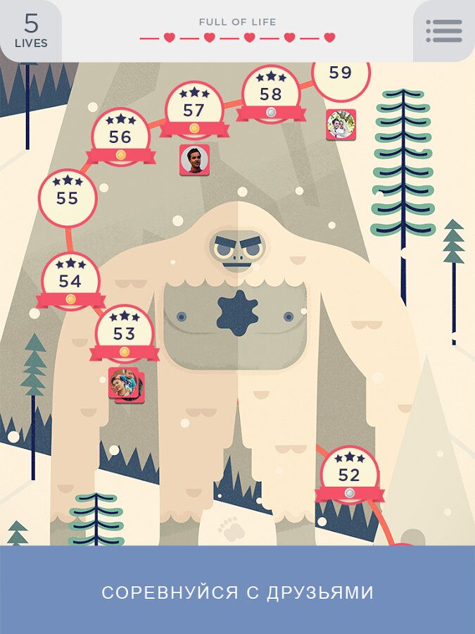 Однако в TwoDots все эти движения соединены незамысловатым сюжетом, который рассказывает о путешествии главного героя в арктическую тундру, на дно океана, в джунгли и прочие экзотические места. В каждой их этих локаций будут уникальные уровни со своими условностями. Всего в игре присутствует 135 разных уровней, которые не дадут вам заскучать.