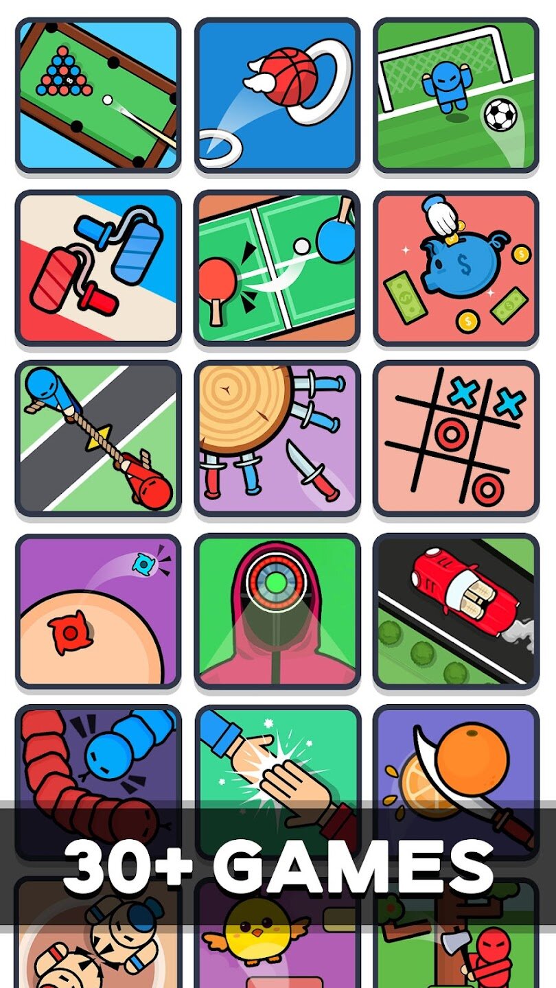 Наслаждайтесь непрерывным действием с играми, которые проверяют различные навыки — от безумного нажатия кнопок в «Перетягивании каната» до точности в «Метании ножей» и синхронизации в «Баскетбольном прыжке». Новые игры, такие как «Битва красками», «Рубка деревьев» и «Змеиное поедание», делают соревнование свежим и непредсказуемым. Простые правила означают, что вы можете сразу приступить к действию без длительных обучающих уроков, что делает игру идеальной для вечеринок, залов ожидания или в любое время, когда вы хотите быстро повеселиться в соревновании.