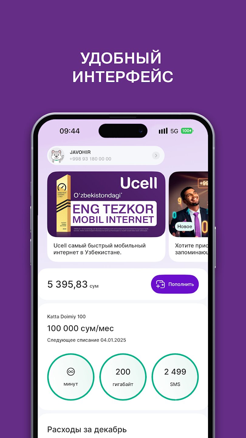 «Ваш личный кабинет, который всегда под рукой. Бесплатное приложение «Ucell» для управления номером и услугами связи. Для всех абонентов Ucell трафик в приложении бесплатный, даже, если вы израсходовали весь интернет.