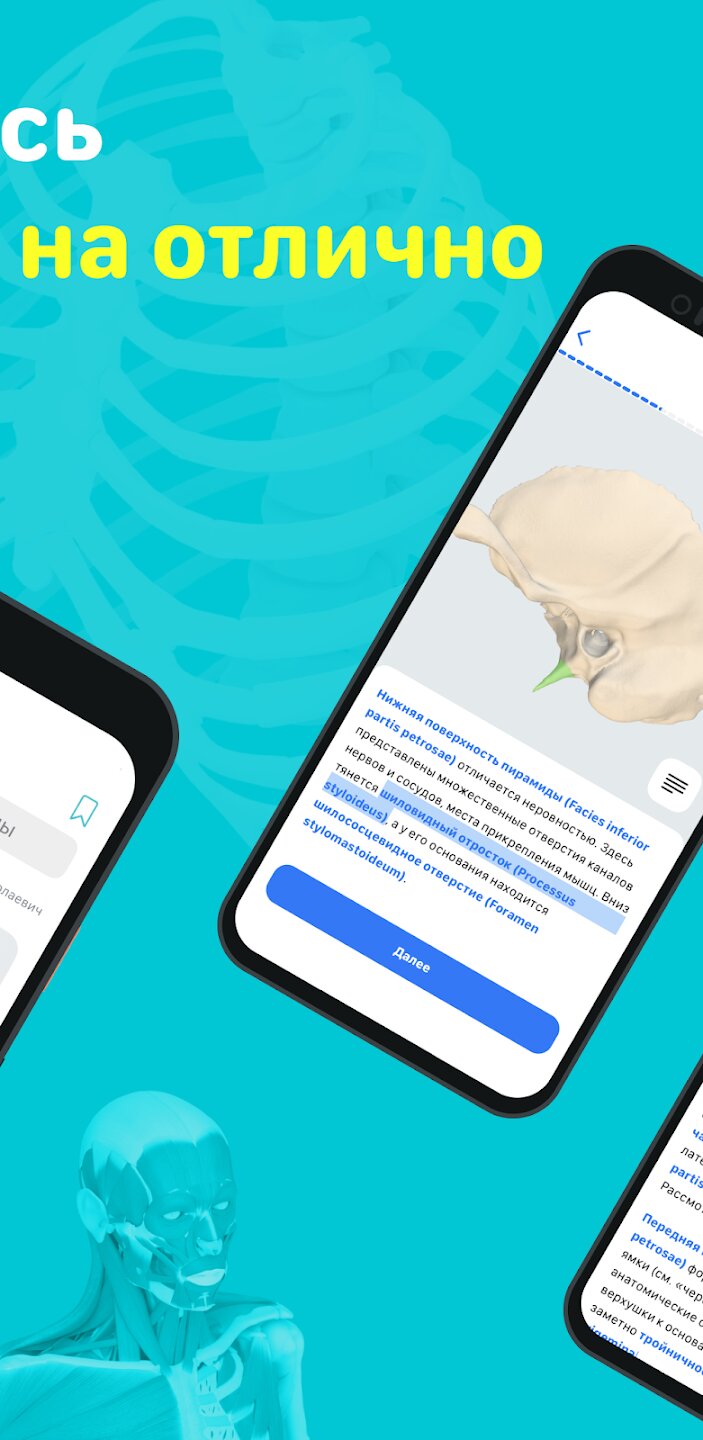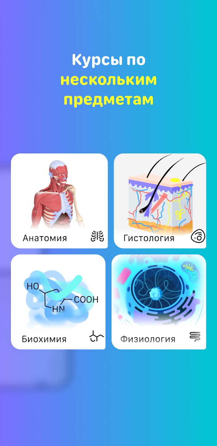 Приложение «Учи Мед» позволяет всесторонне подготовиться к занятиям по анатомии, гистологии, биохимии и физиологии или освежить старые знания.