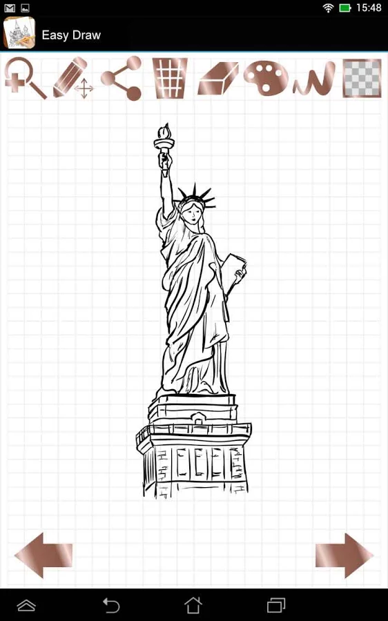 - Возможность вернуться к предыдущему шагу или пропустить текущий — рисуйте в своем собственном темпе!