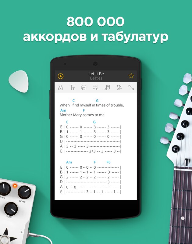 - Авто-прокрутка. Просматривайте табы при помощи удобной функции авто-прокрутки. Теперь вам не нужно самим прокручивать строки с табами, за вас это сделает само приложение.