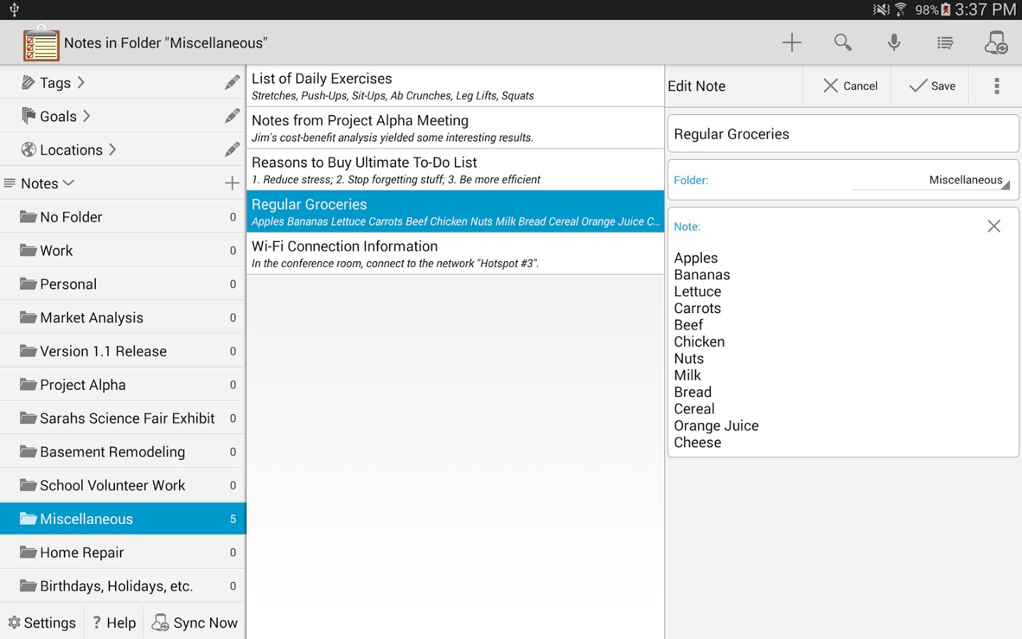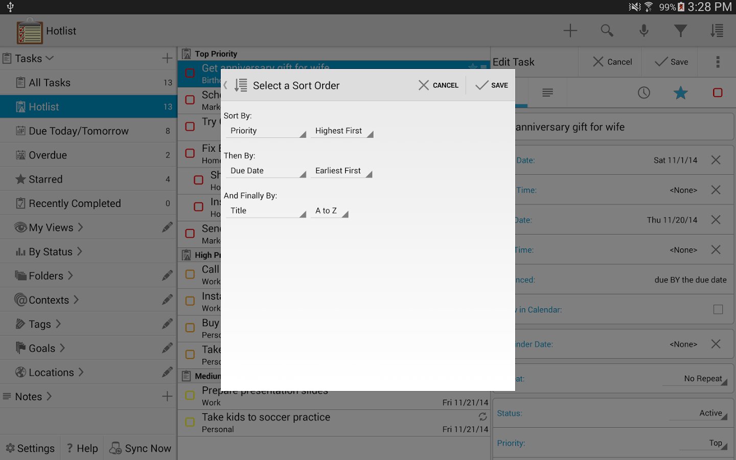 - Организуйте свои дела с помощью папок, контекстов, тэгов, целей, пометок и под-задач