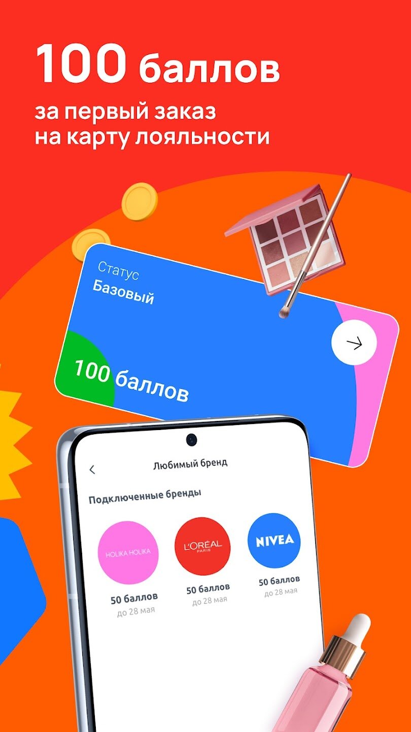 С картой лояльности вы можете оплачивать до 100% вашей покупки баллами и получать персональные скидки на товары из разных категорий — от косметики до товаров для дома. Теперь карта лояльности всегда с вами, и вы не пропустите ни одной акции.