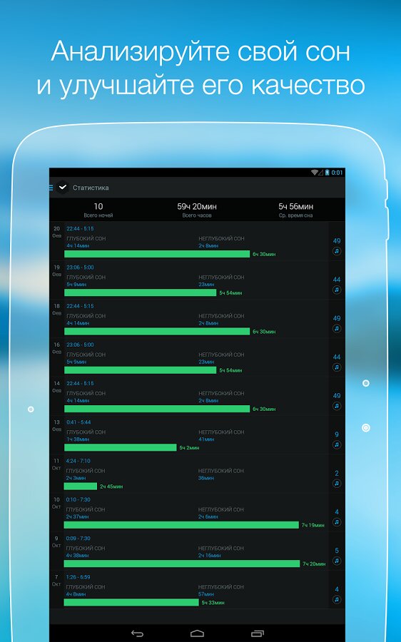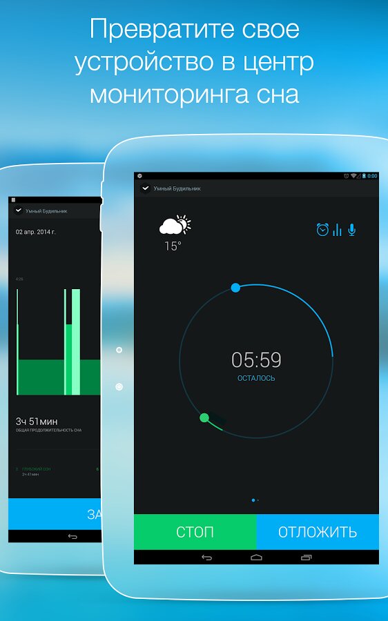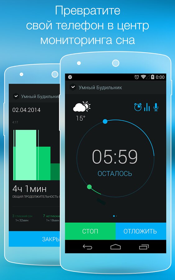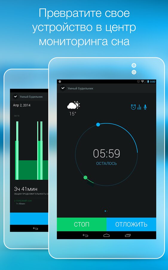 Умный Будильник — приложение разработано специально для борьбы с недосыпанием — типичной проблемой современного человека. Умный Будильник определяет оптимальный момент для пробуждения, поэтому пользователи легко просыпаются и чувствуют себя бодро.