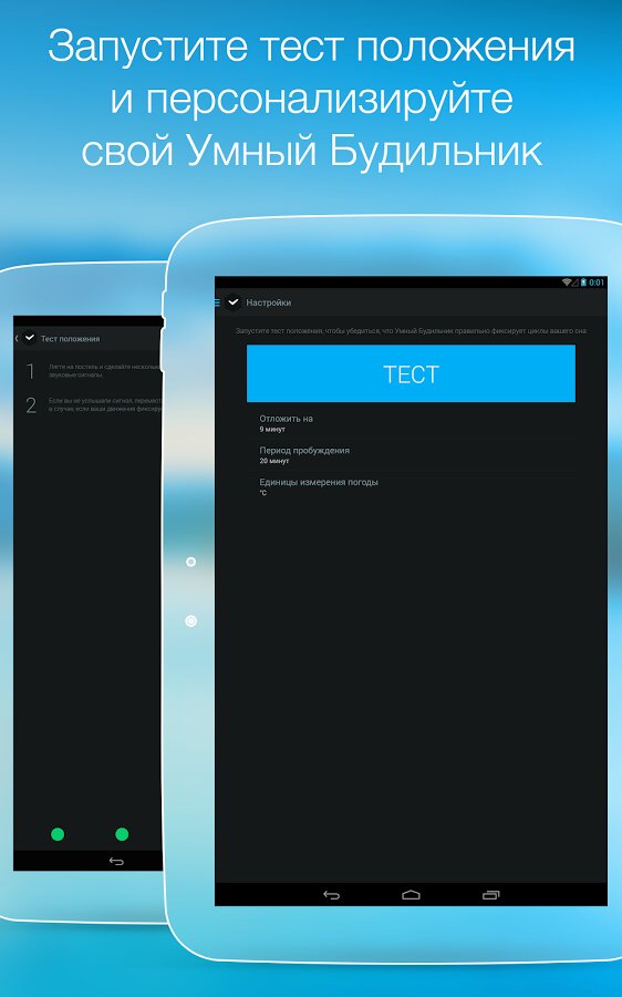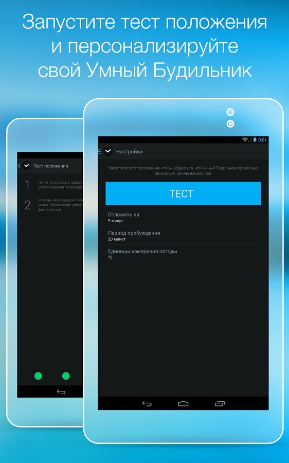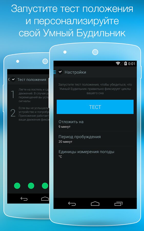 В течение ночи мы проходим несколько циклов сна, каждый из которых состоит из различных фаз: переходная фаза, фаза легкого сна, фаза глубокого сна и фаза сновидений. Находясь в каждой из этих фаз, мы ведем себя по-разному: ворочаемся, подергиваем конечностями, бормочем что-то или же, наоборот, лежим спокойно. Датчики в вашем устройстве Android помогают зафиксировать все движения и звуки во время сна, а алгоритм приложения анализирует их и определяет, в какой фазе сна вы находитесь. Чтобы чувствовать себя бодрым, вы должны проснуться во время легкой фазы сна, когда ваш организм естественным образом готовится к пробуждению. Приложение высчитывает, когда наступает этот момент и будильник срабатывает.