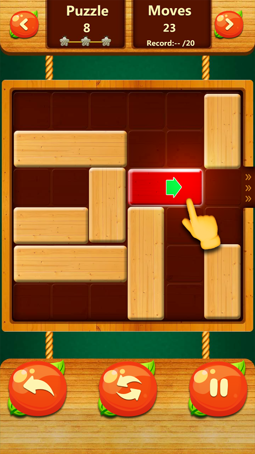 Цель состоит в том, чтобы разблокировать красный блок из доски, сдвинув другие блоки из пути, горизонтальные блоки можно перемещать из стороны в сторону, вертикальные блоки можно перемещать вверх и вниз, снять блокировку с минимальным moves.There являются 2500 головоломок в общей сложности, и включает в себя игре два режима, один свободный режим и другой сложный режим, выберите режим в соответствии с вашими интересами. Игра имеет наибольшее количество головоломок, которые вы не найдете в любой другой игре.