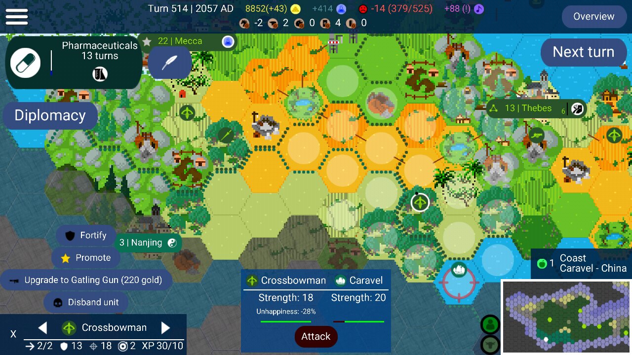 UnCiv — open-source версия самой знаменитой цивилизационно-строительной стратегии. Работает быстро, весит мало, без рекламы, абсолютно бесплатная.