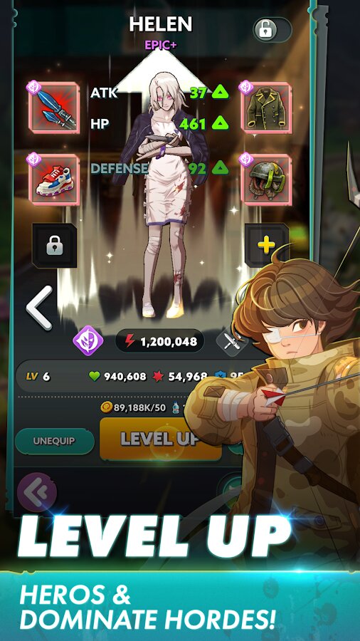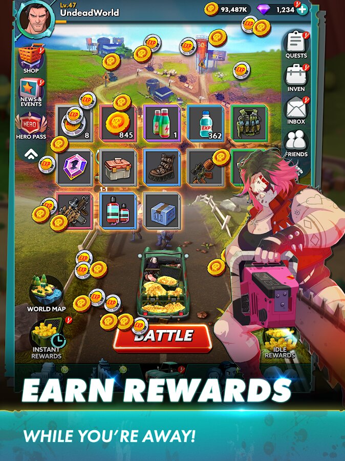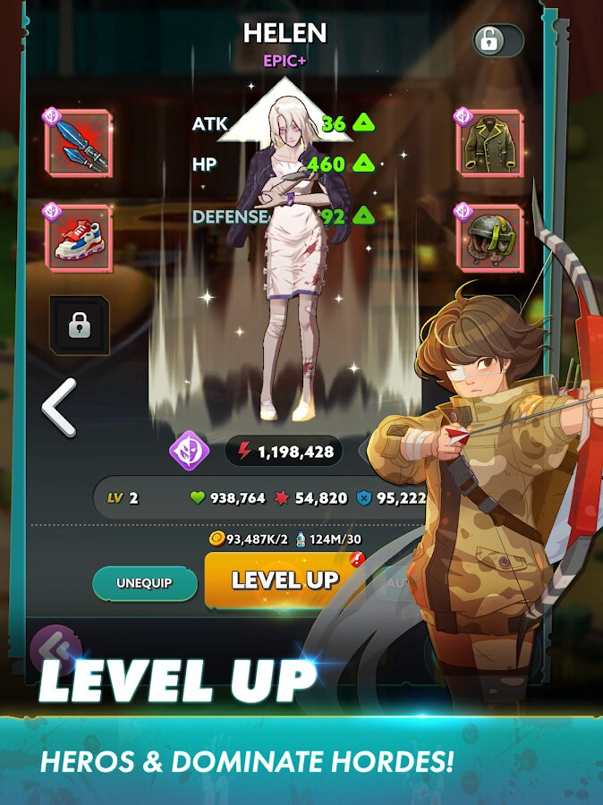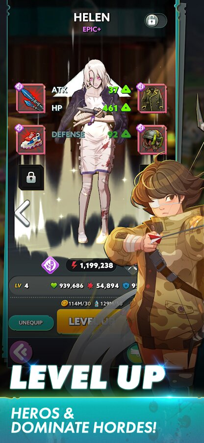 Нанимайте новых героев и позаботьтесь об их улучшении. Даже в режиме AFK ваши воины будут приносить вам добычу и ценные артефакты. А для разнообразия вы всегда сможете принять участие в PvP сражениях или отправиться в рейдовое приключение с другими игроками вселенной Undead World.
