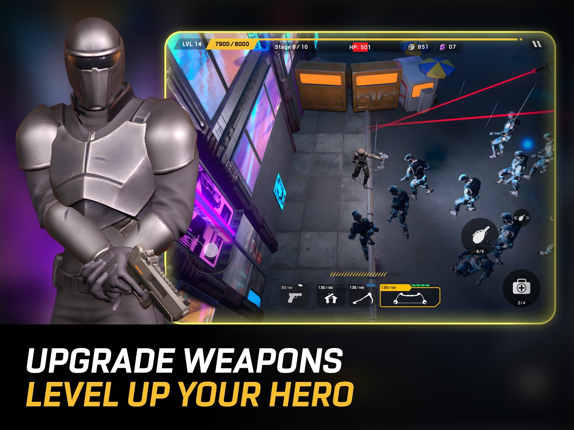 Создайте свой арсенал из разнообразного оружия, включая АК-47, миниганы и апокалиптическую косу, объединившись со специализированными компаньонами. Выбирайте своих партнеров с умом — будь то гранатометчик, снайпер или ниндзя, каждый из них обладает уникальными способностями, которые могут переломить ход сражения. Откройте скрытые комнаты, содержащие улучшения оружия, и соберите золото, чтобы разблокировать мощные усовершенствования и скины персонажей, которые повысят вашу боевую эффективность.
