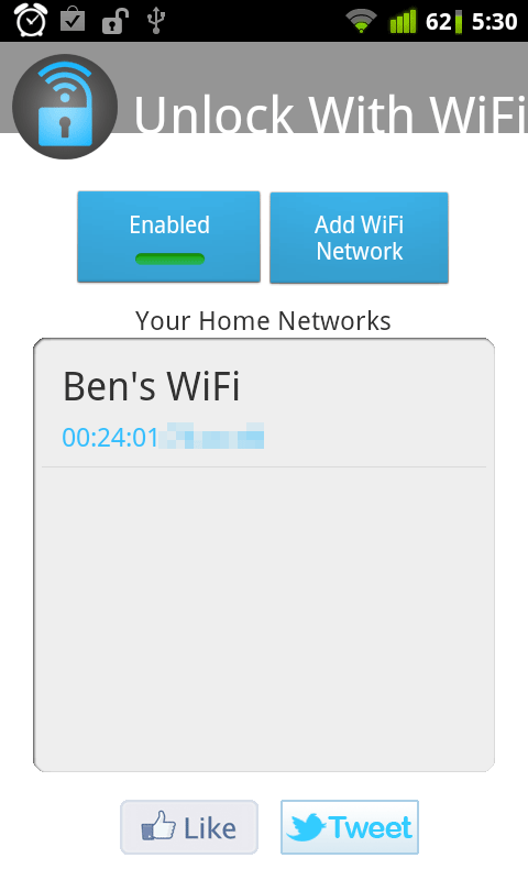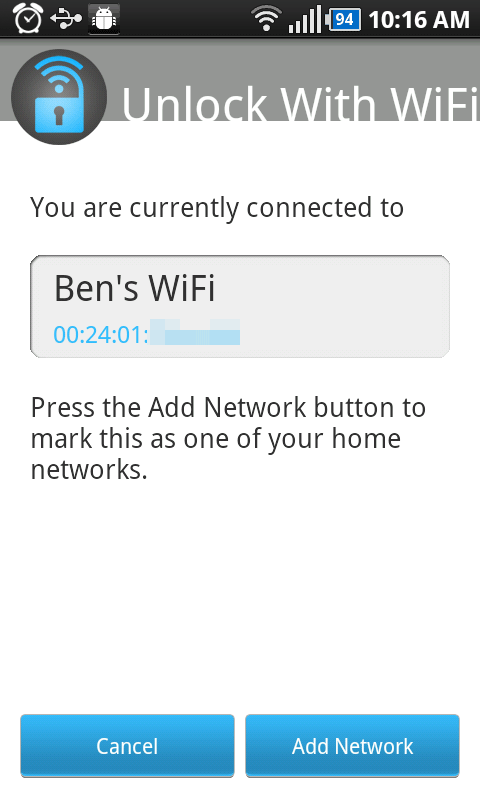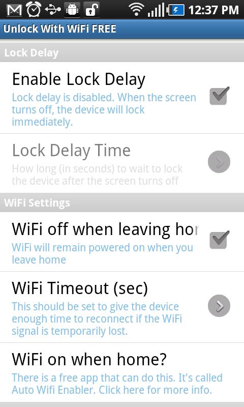 Unlock With WiFi — программа для снятия блокировки homescreen вашего устройства, когда вы находитесь в радиусе действия настроенной Wi-Fi сети.