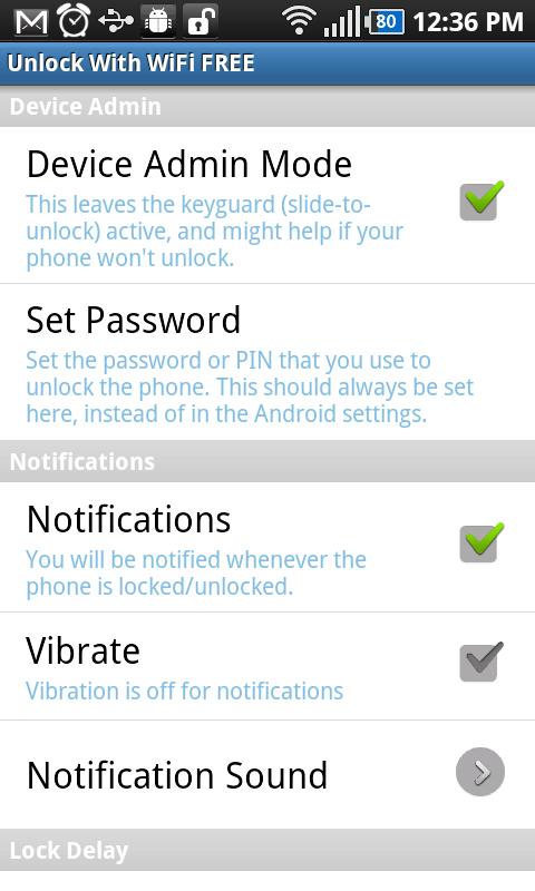 Умеет включать/отключать Wi-Fi, GPS. Есть настройка задержки времени блокировки, оповещений.