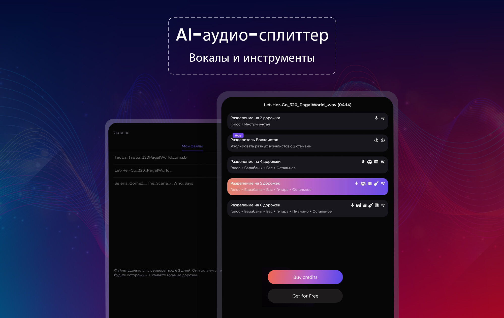 unMix – это мощное приложение для разделения аудиодорожек с помощью искусственного интеллекта. Оно позволяет изолировать вокал, инструменты или бас-партии из любых композиций для профессионального и личного использования.