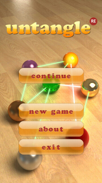 Untangle RE — классическая головоломка. Цель игры — распутать паутину из линий так, чтобы линии не пересекались, двигая точки. Если линии выделены красным цветом, значит пересечение есть и от него надо избавиться. Зеленым обозначаются линии, которые не имеют пересечений с другими.