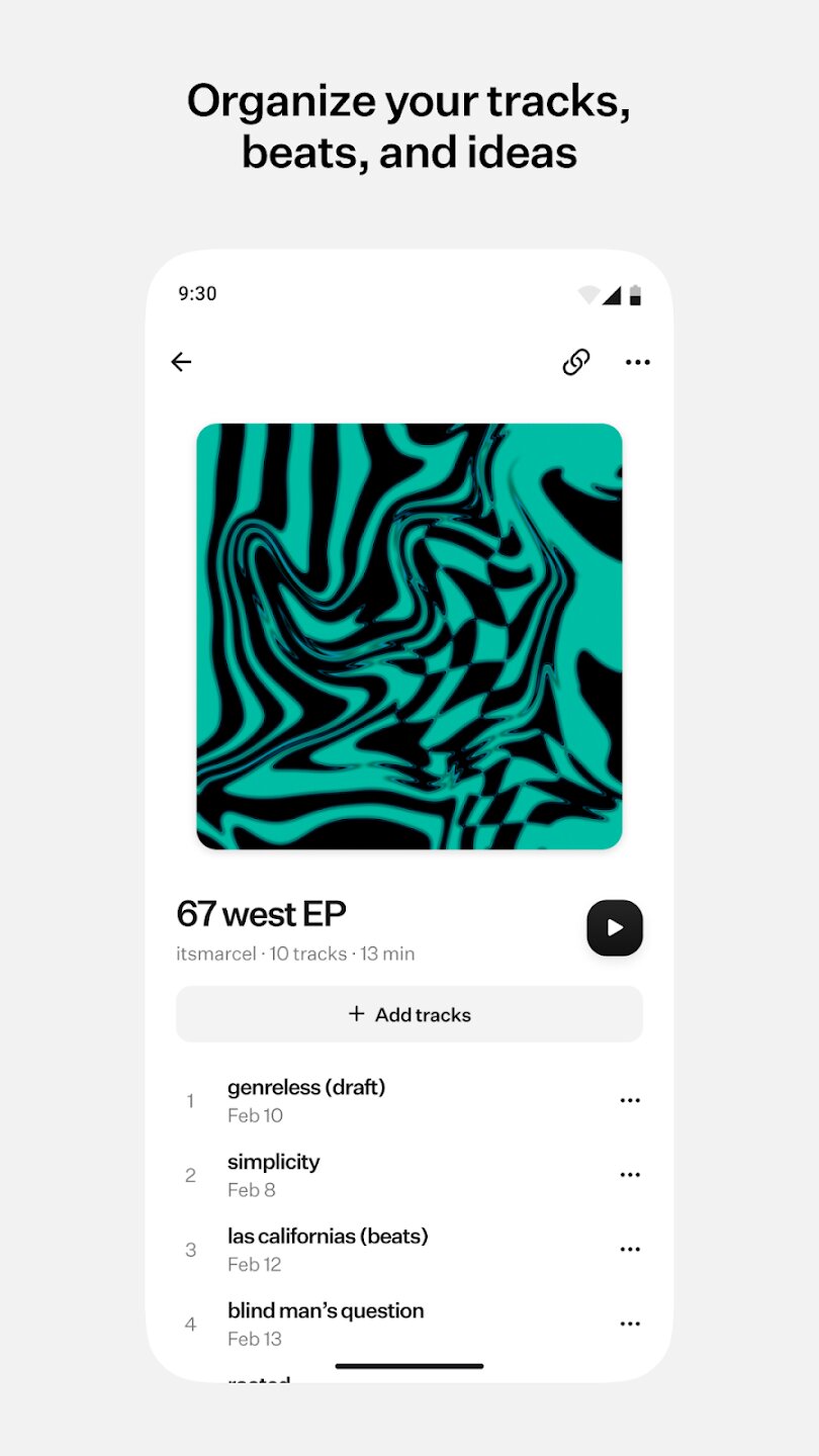 Платформа отличается возможностями совместного использования и совместной работы, что делает ее идеальной для работы над треками, которые находятся в процессе создания. Вы можете делиться ссылками на свою музыку, видеть, кто ее слушает, и управлять доступом к своим проектам. Она также интегрируется с популярными социальными приложениями, такими как TikTok и Instagram*, что позволяет вам легко делиться фрагментами своей работы. Уделяя особое внимание безопасности, сервис сотрудничает с ведущей мировой компанией в области кибербезопасности, чтобы обеспечить защиту вашей музыки, давая вам уверенность при хранении и обмене своими творениями.