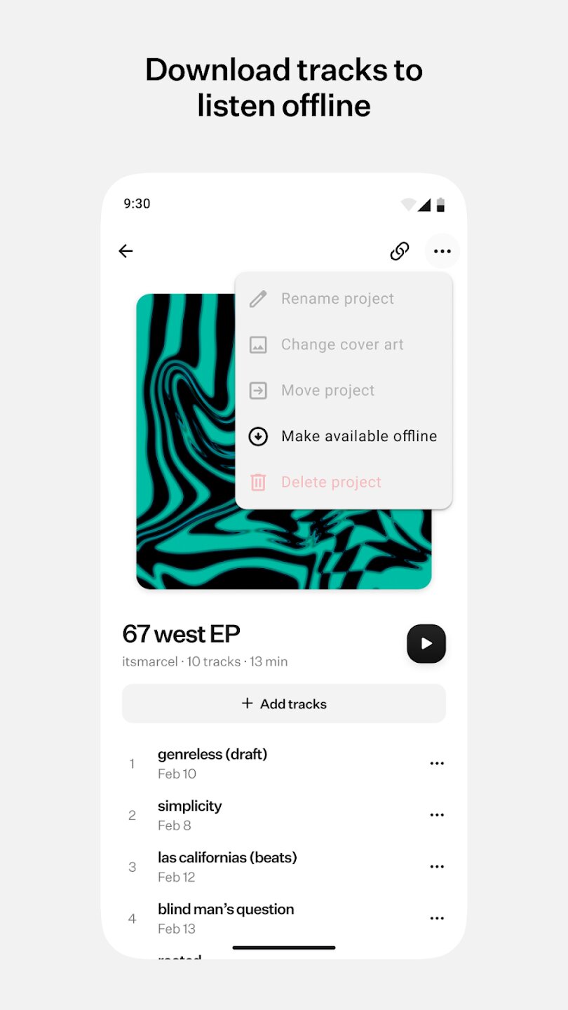 - Организуйте треки в синхронизированные проекты и папки на Android, iOS и в веб-браузере.