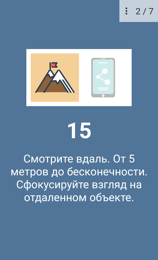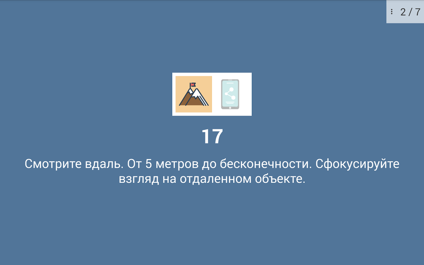 Зрение неминуемо будет ухудшаться, если не помогать глазам бороться с усталостью при помощи упражнений. Все упражнения для глаз, которые есть в этом приложении, можно выполнять в офисе прямо на рабочем месте, дома или на улице. Это очень удобно.