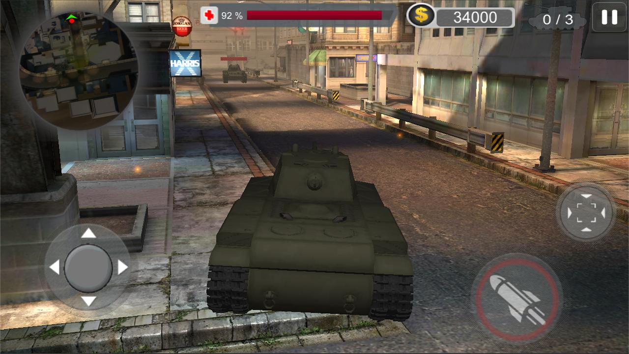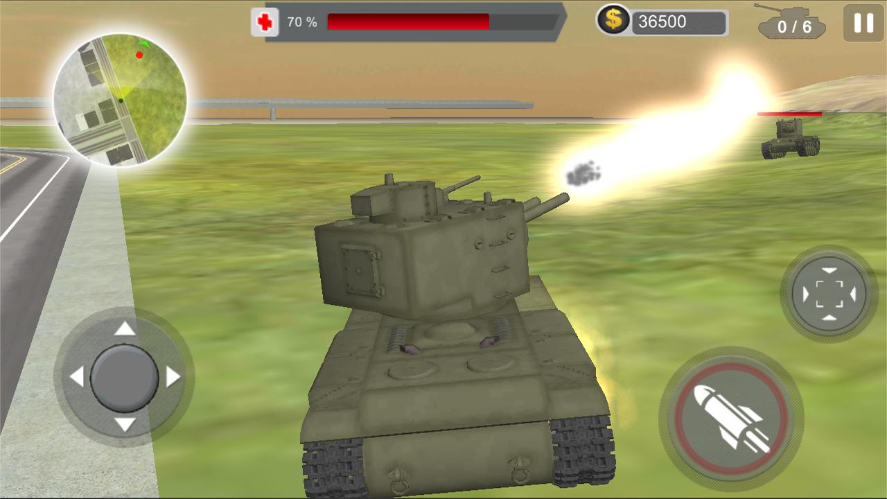 - Нажмите и перетащите палец в любом месте на экране для движения танка и вращения в любом направлении.