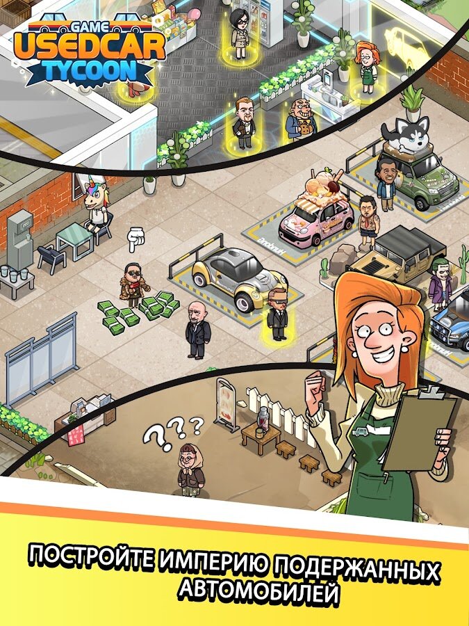 Used Car Tycoon Game – вы будете управлять магазином заниматься продажей подержанных автомобилей с нуля. Нужно привлечь больше клиентов, заработать прибыль, построить империю подержанных автомобилей и стать автомобильным магнатом, приобретая, ремонтируя автомобили, нанимая сотрудников, разблокируя объекты, увеличивая рекламу и многое другое.🚗🚗👑